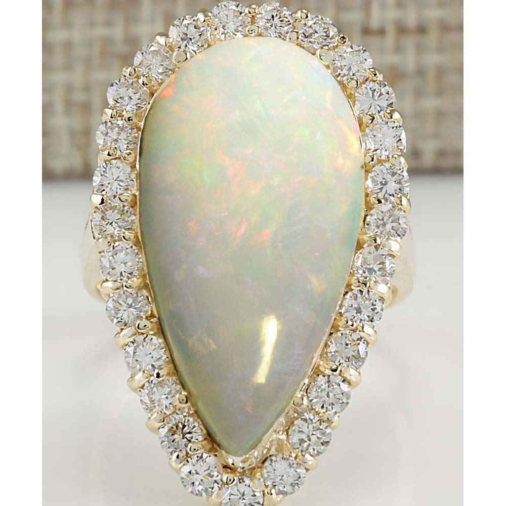 9.39 CTW Natural Opal And Diamond Ring 14K Solid Yellow Gold