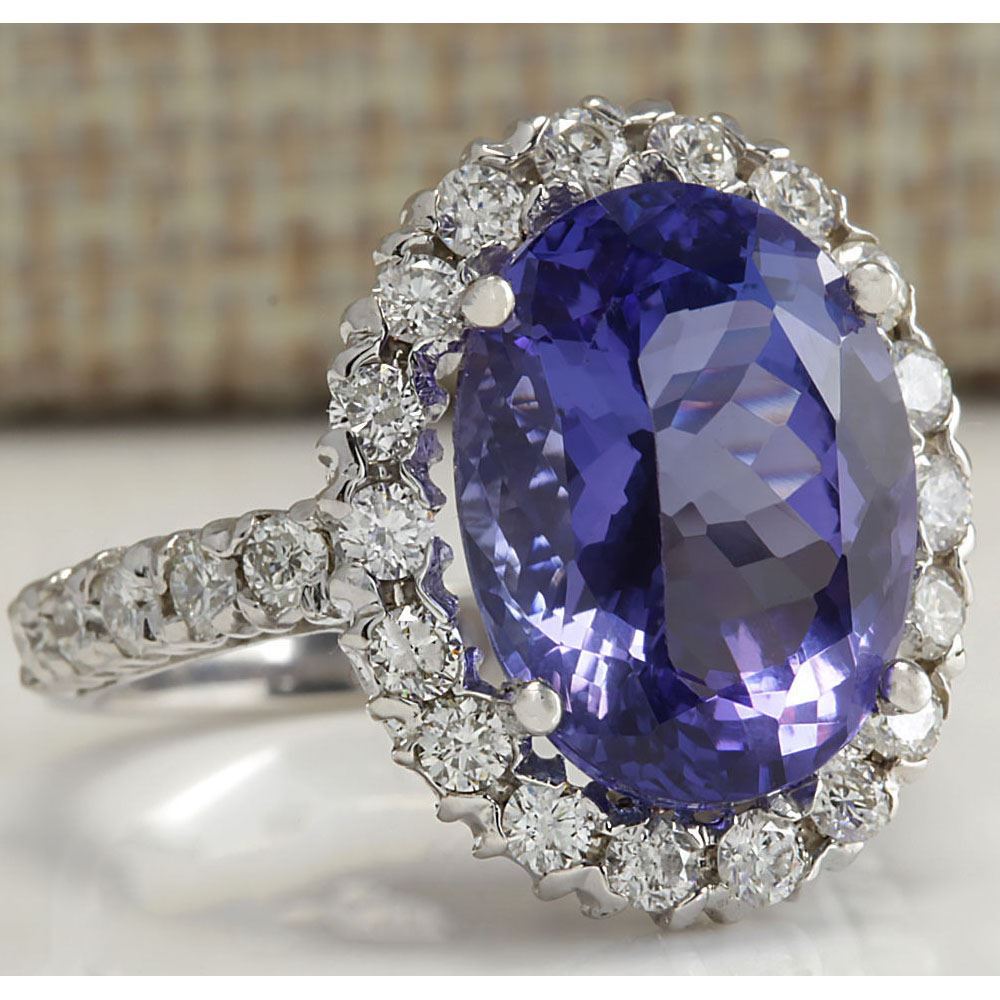 9.39 CTW Natural Tanzanite And Diamond Ring 14K Solid White Gold
