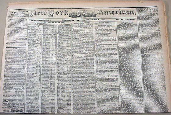 9-4-1844 NEWSPAPER - THE NEW YORK AMERICAN W/ MANY ADS