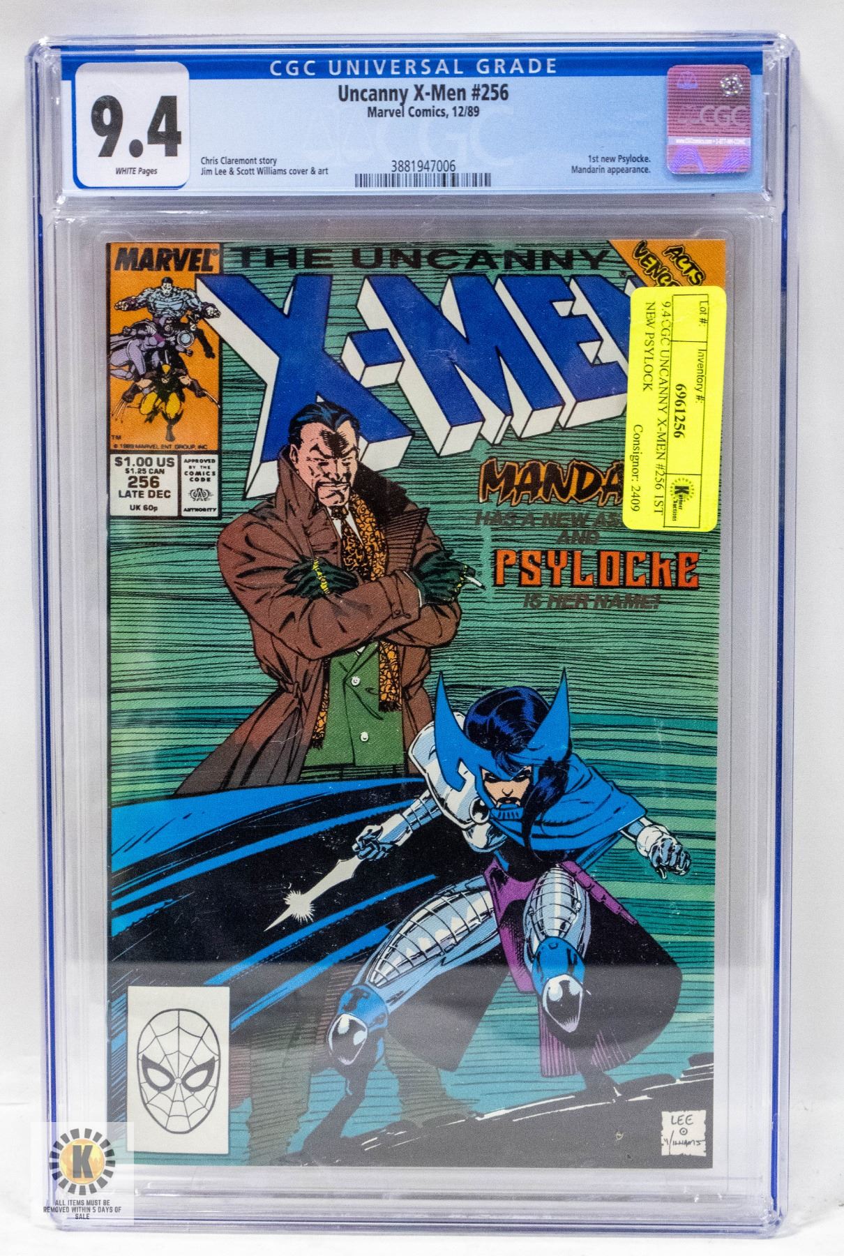 9.4 CGC UNCANNY X-MEN #256 1ST NEW PSYLOCK