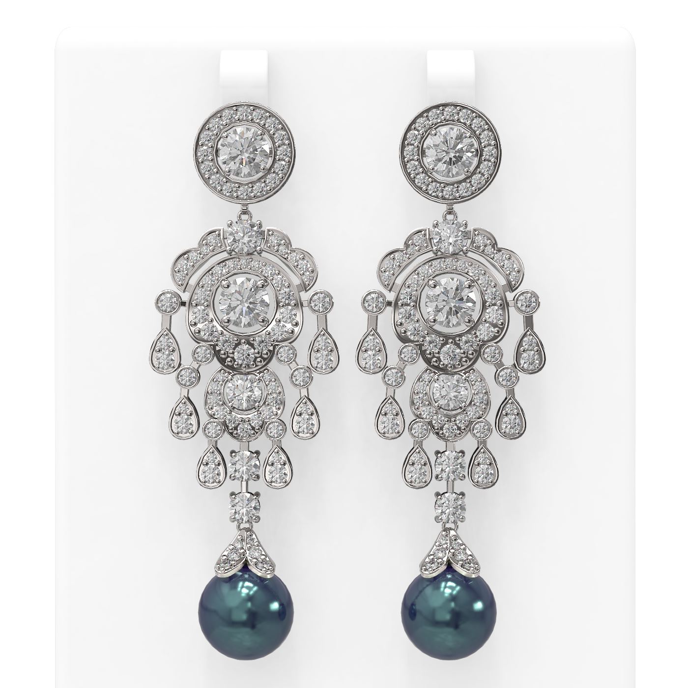 9.4 ctw Diamond and Pearl Earrings 18K White Gold