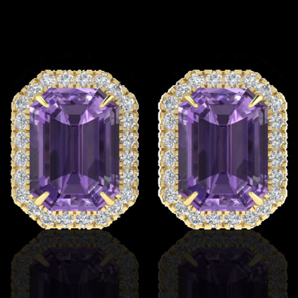 REF-77N8F - SKU: 21217 ---- 9.40 ctw Amethyst & Micro Pave VS/SI Diamond Earrings 18k Yellow Gold