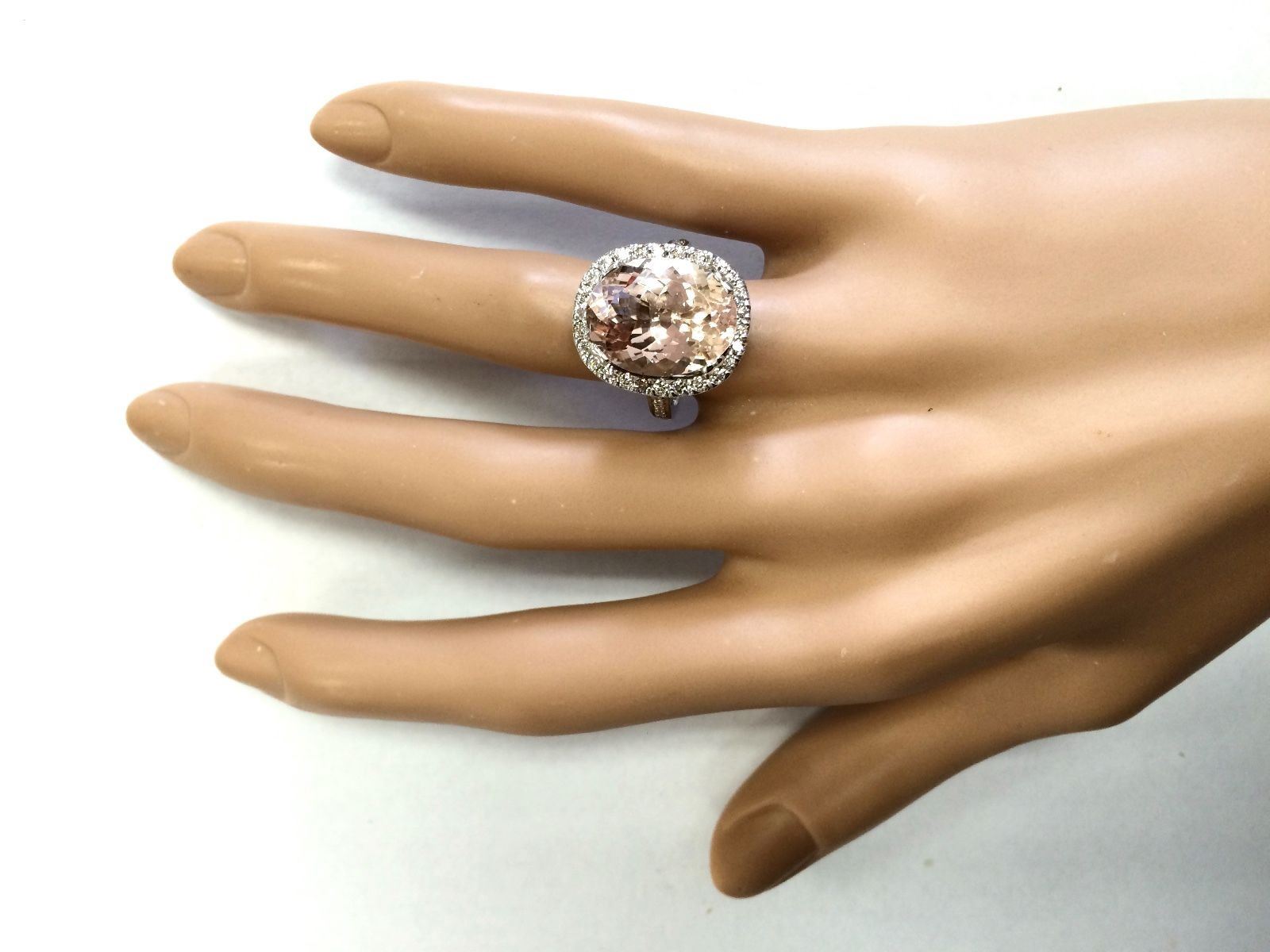 9.47 CTW Natural Morganite And Diamond Ring In 18K White Gold