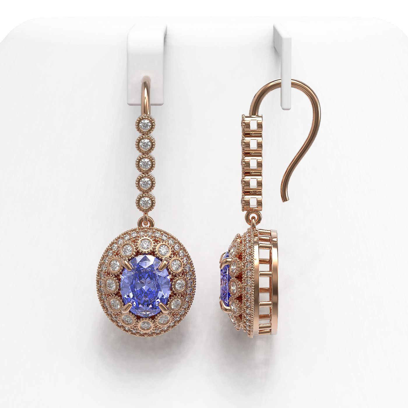 REF-315M6G - SKU: 43611 ---- 9.47 ctw Tanzanite & Diamond Victorian Earrings 14K Rose Gold