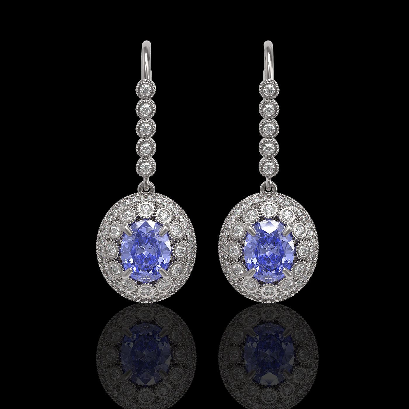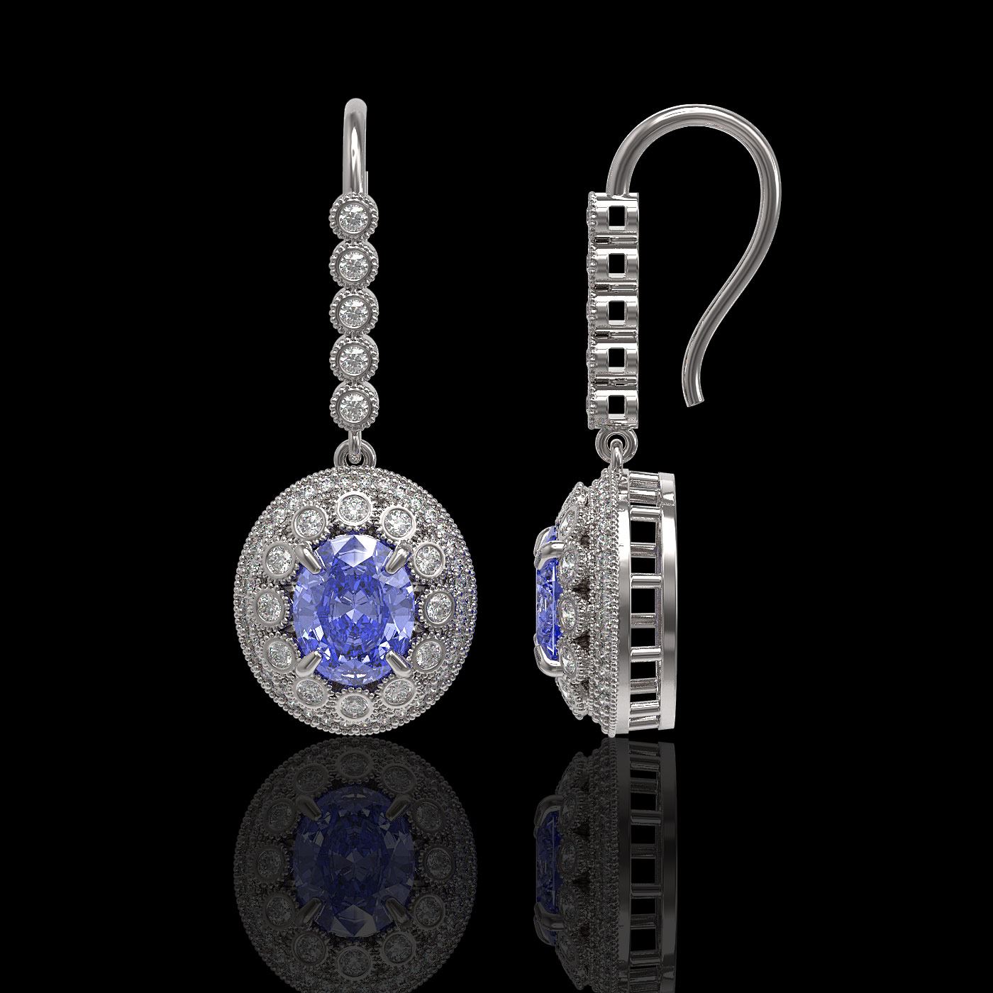 REF-315H6R - SKU: 43610 ---- 9.47 ctw Tanzanite & Diamond Victorian Earrings 14K White Gold