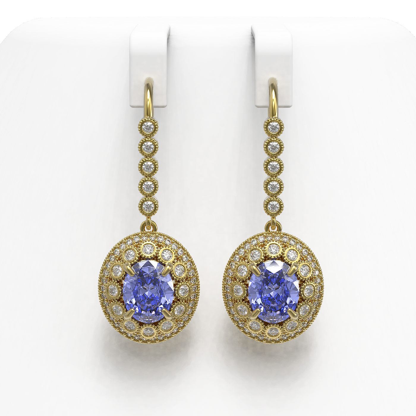 REF-315W6H - SKU: 43612 ---- 9.47 ctw Tanzanite & Diamond Victorian Earrings 14K Yellow Gold
