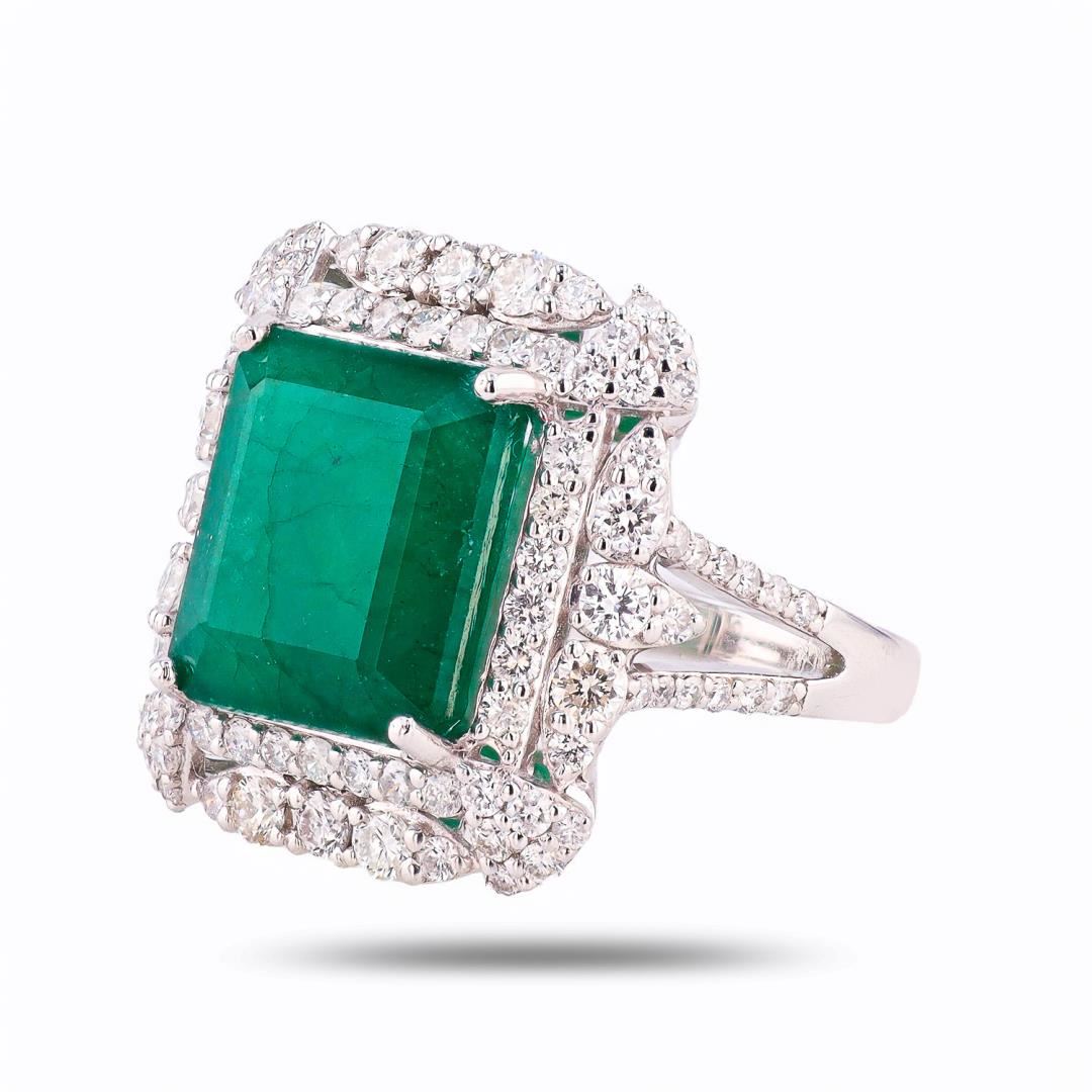 One polished, stamped, and tested platinum ring marked Oscar Friedman. The ring is mounted with 1 genuine emerald center stone weighing approximately 9.48 carat, and 96 genuine round diamonds weighing approximately 1.77 carats. This item weighs 13.3 grams, condition is new, excellent workmanship. #MAIN GEMSTONE# Species: Natural Beryl; Variety: Emerald; Shape: Octagonal; Cutting Style: Step Cut; Measurements: 12.8 x 11.3 x 7.5mm; Weight: 9.48 carat; Color: Green; Cut Grade: Very Good; Refractive Index: 1.564 - 1.595 DR; Birefringence: 0.005 to 0.009; Hardness: 7.5 - 8 #ADJACENT GEMSTONES ON RING# Identity: Natural Diamond; Shape: Round; Cutting Style: Brilliant Cut; Quantity: 96 Diamonds; Measurements: 1.2 - 2.2mm; Total Weight: 1.77 carats; Color Grade: F-G; Clarity Grade: VS2-SI2; Refractive Index: 2.417; Hardness: 10 #EMERALD WEIGHT: 9.48 ct; TOTAL DIAMOND WEIGHT: 1.77 cts; WEIGHT OF ITEM: 13.3 grams; METAL: Platinum #Size: 7