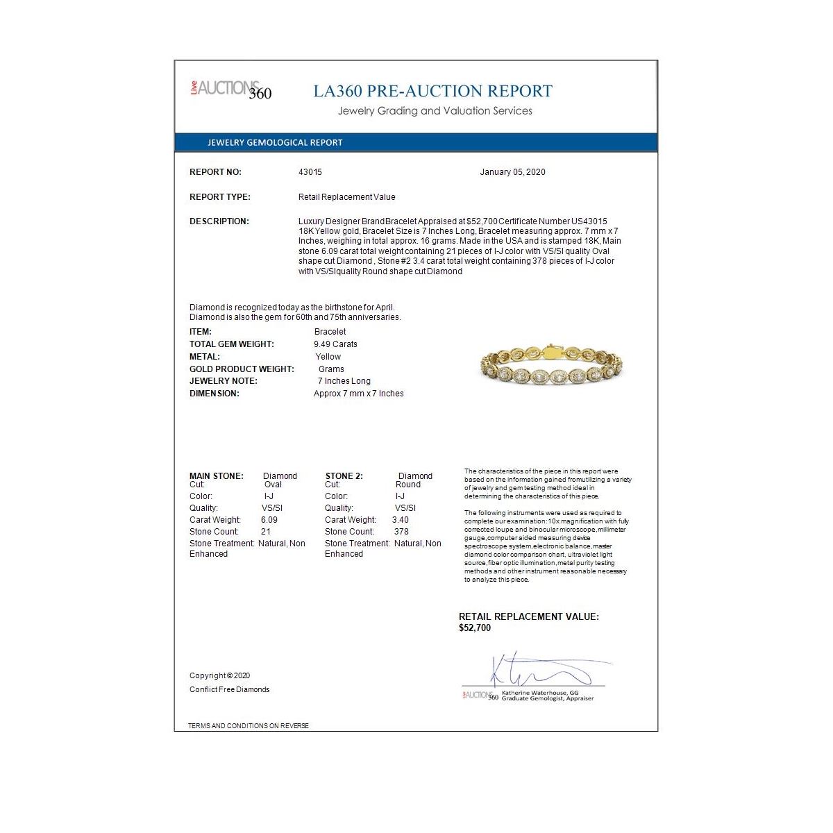 REF-798N3F - SKU: 43015 ---- 9.49 ctw Oval Cut Diamond Micro Pave Bracelet 18K Yellow Gold