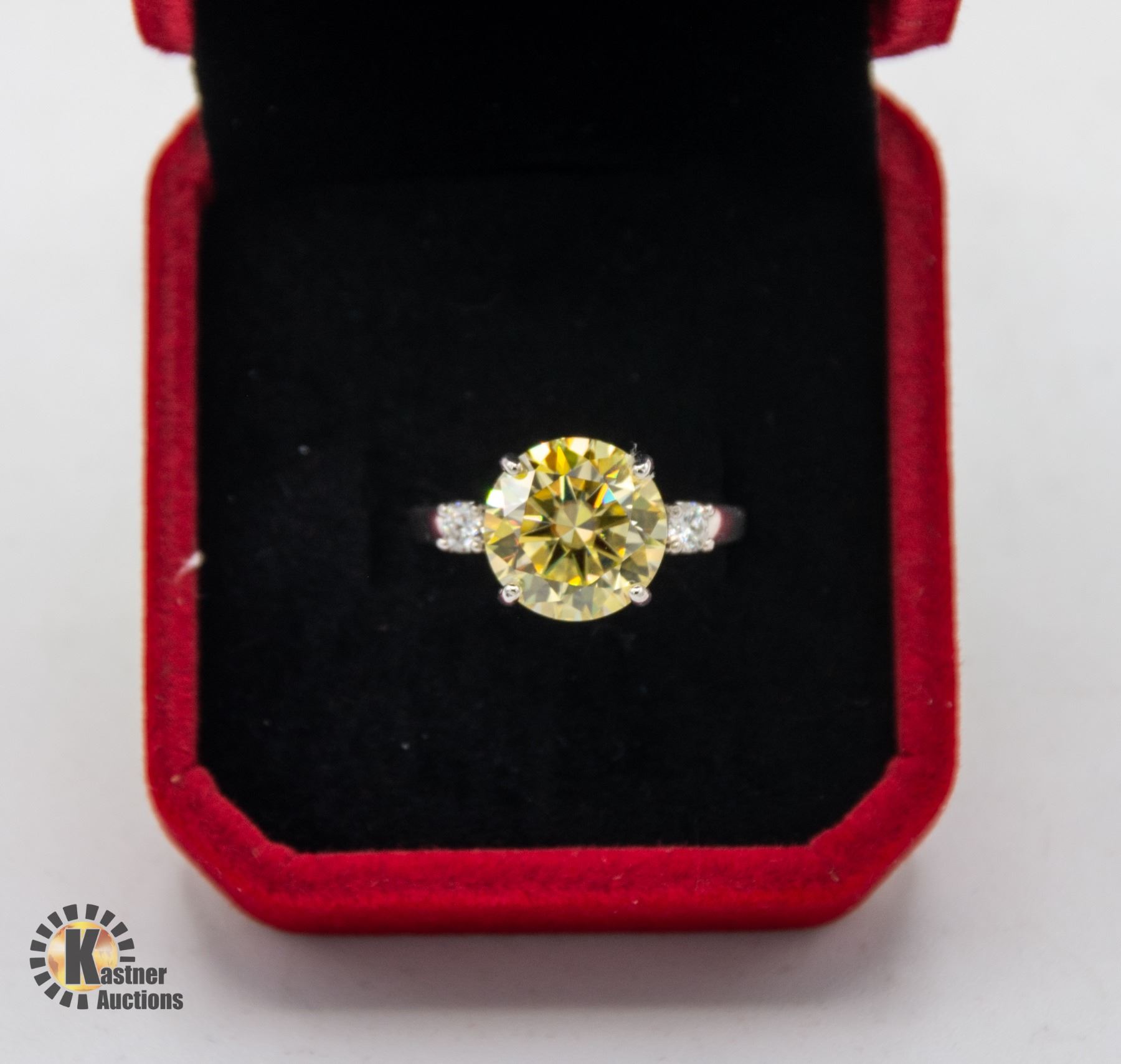 COLOR FULL CUT ROUND BRILLIANT MOISSANITE WITH 0.10 CT MOISSANITE SET ON EITHER SIDE SET IN STERLING SILVER RING SIZE 7.75 **ALL ITEMS MUST BE REMOVED BY 5PM SATURDAY, MARCH 30TH 2024. ALL REMAINING ITEMS WILL BE SUBJECT TO A $6.00 PER DAY STORAGE CHARGE. ANY ITEMS REMAINING AFTER MONDAY, APRIL 15TH, 2023 WILL BE CONSIDERED FORFEITED. NO REFUNDS WILL BE ISSUED FOR FORFEITED ITEMS. TO SCHEDULE A PICK UP APPOINTMENT CLICK HERE