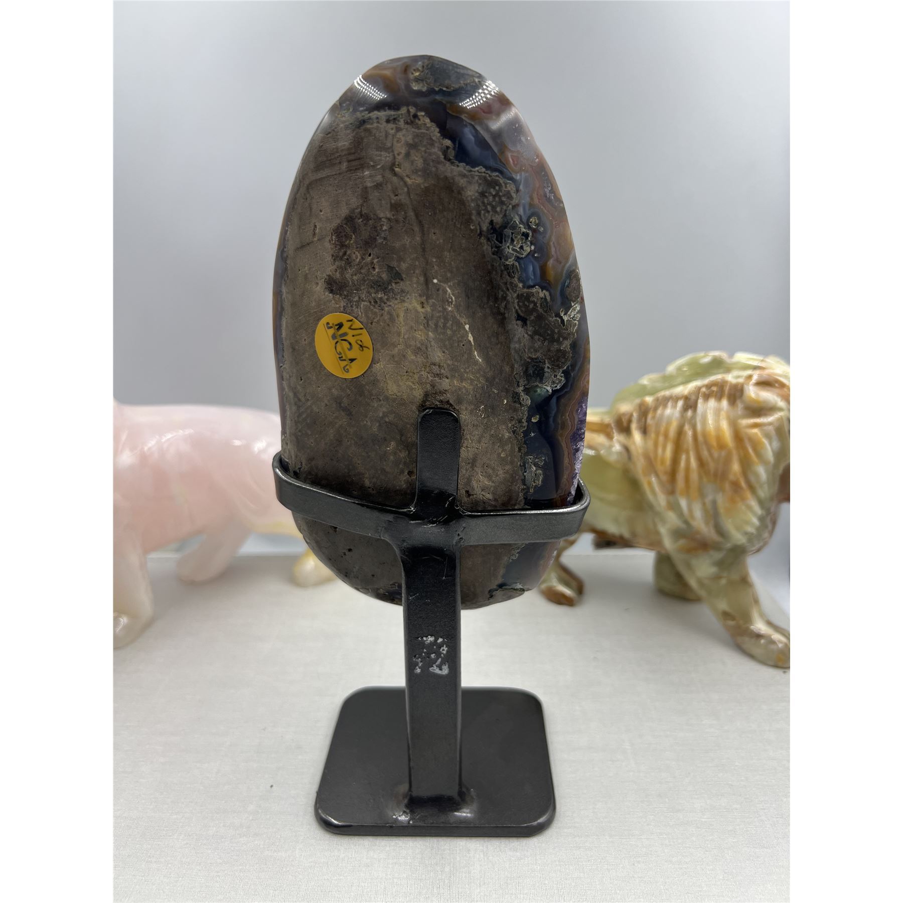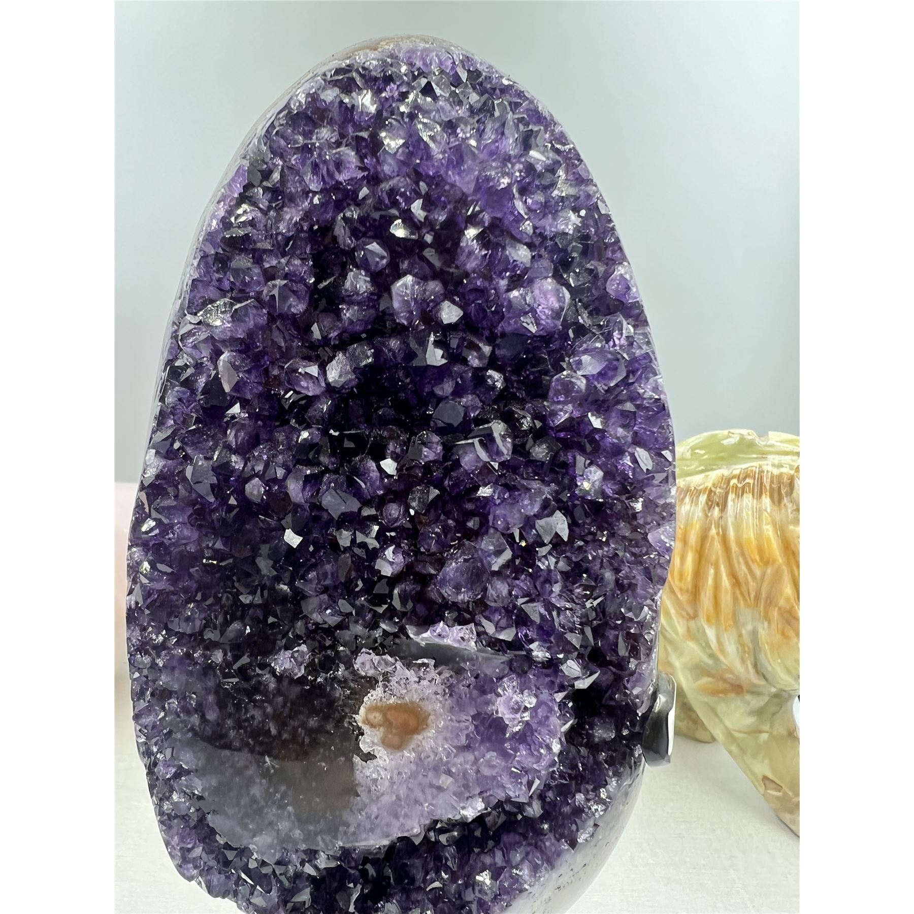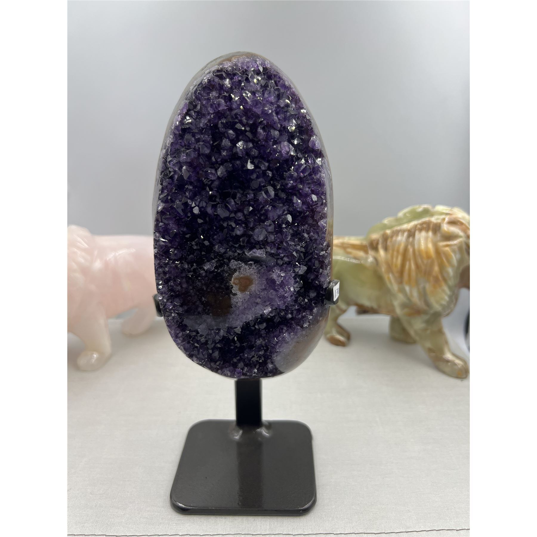 9.5 X 3.8 INCH HIGH GRADE URUGYAN AMETHYST CLUSTER ON METAL STAND