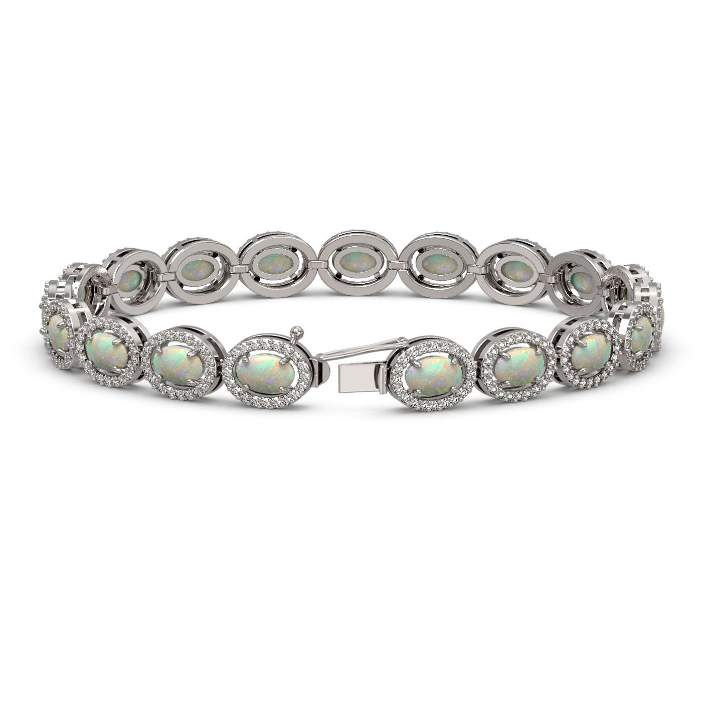 REF-251F8M - SKU: 40466 ---- 9.5 ctw Opal & Diamond Micro Pave Halo Bracelet 10k White Gold