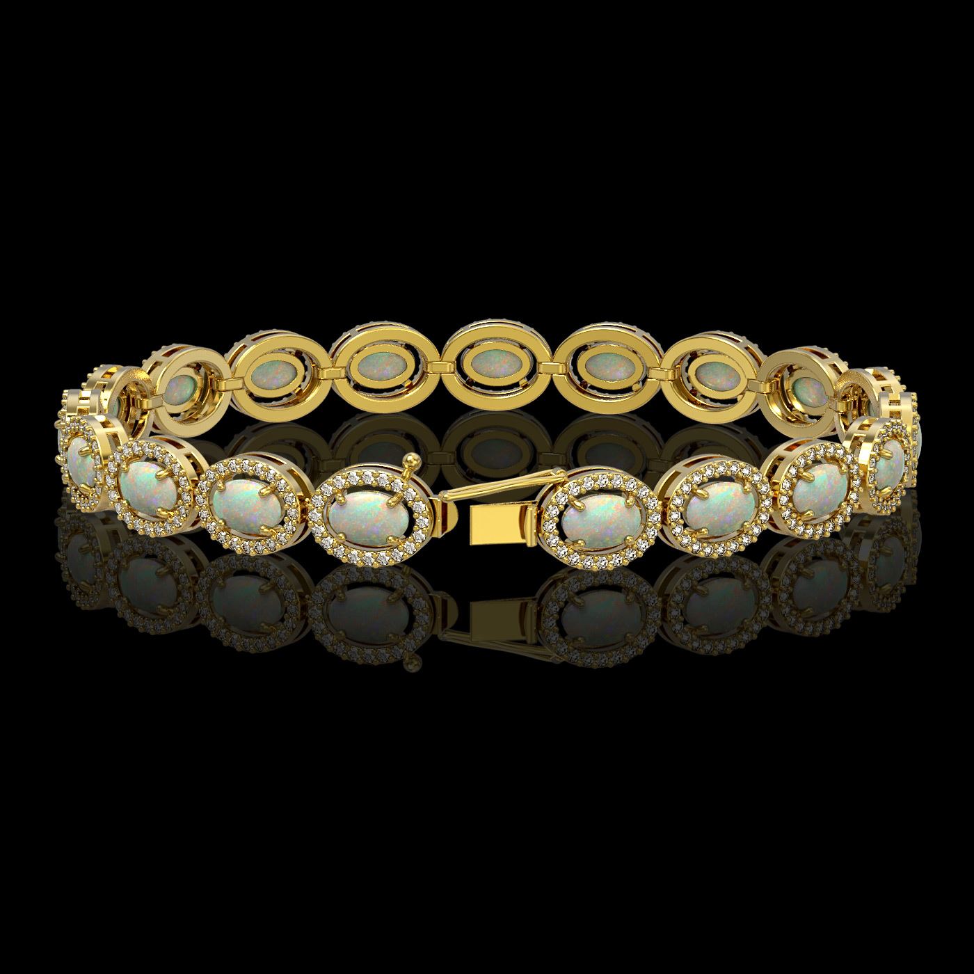 REF-251A8N - SKU: 40468 ---- 9.5 ctw Opal & Diamond Micro Pave Halo Bracelet 10k Yellow Gold
