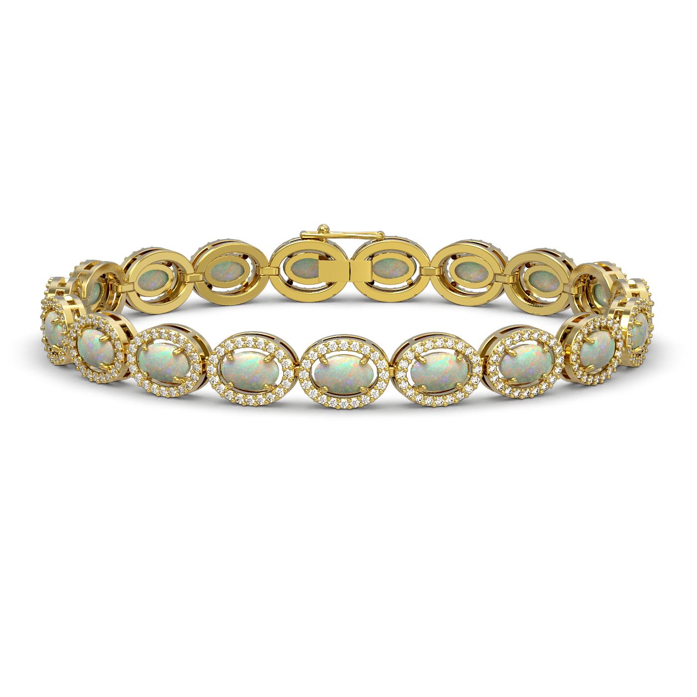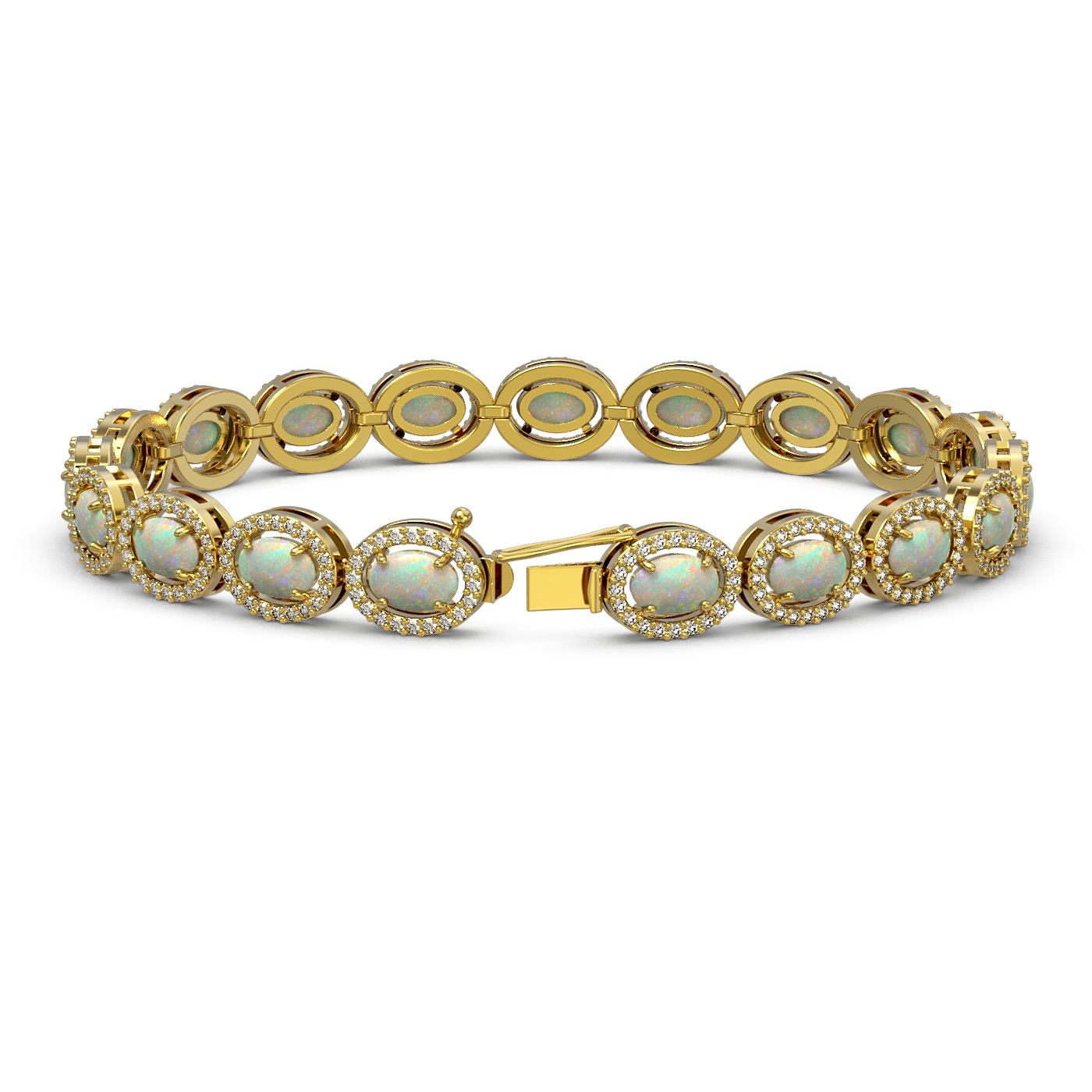 SKU: 40468 ---- 9.5 ctw Opal & Diamond Micro Pave Halo Bracelet 10k Yellow Gold