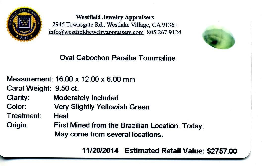 9.5ctw. Oval Cut Paraiba Tourmaline. Westfield Appraised at $2,757.00.