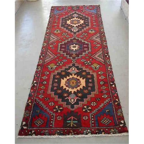 This is a beautiful hand woven runner rug from Hamedan in Persia. wool pile, cotton foundation, hand woven, plush pile, 0 to 5 years old as new condition. Size is 9'5" x 3'2" exc. cond, washed, clean, plush soft pile, ready to use. Combined shipping available to save you money. SHI by UPS to Canada $25 to USA $35...Combined shipping is available.