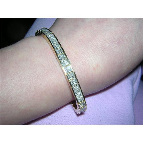 BEAUTIFUL 9.50 CARATS OF PRINCESS CUT DIAMONDS(4 DIAMONDS PER PANEL)SET IN SOLID 14K YELLOW GOLD.7 INCH.DIAMONDS ARE VS2/SI1-G COLOR.24,500 RETAIL TAG STILL ATTACHED...EMAIL WITH QUESTIONS AND OR INQUIRIES.THANKS.