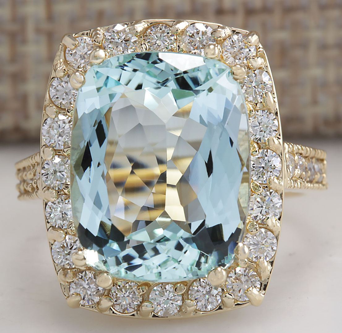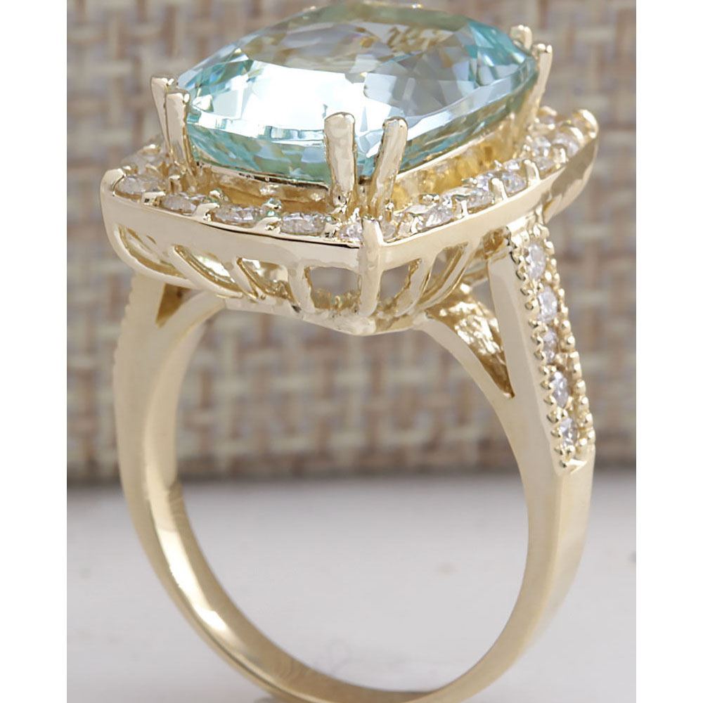 9.50 CTW Natural Aquamarine And Diamond Ring In 18K Solid Yellow Gold