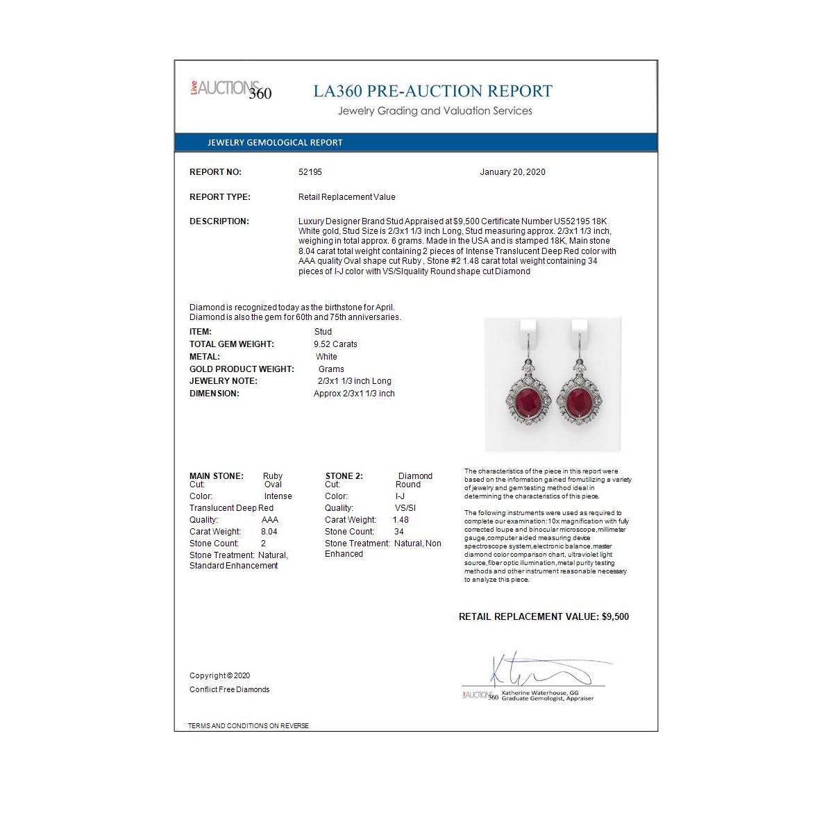 Total Gem weight: 9.52 carats