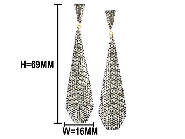 DIAMOND DESIGNER LONG EARRING/Diamond Count 1:/Diamond 1 TCW:9.53/Diamond Color & Clarity:J-L/I1-I2/Diamond Count 2:/Diamond 2 TCW:/Diamond Count 3:/Diamond 3 TCW:/Diamond Color & Clarity:/Gemstone Count 1: /Gemstone 1 TCW:/Gemstone Type:/Gemstone Count 2: /Gemstone 2 TCW:/Gemstone Type:/Gemstone Count 3: /Gemstone 3 TCW:/Gemstone Type:/Metal 1:14k GoldYellow Gold/Gram Weight:0.18over0.925 SilverSterling Silver /Weight/gram:12.05/Gross Weight:14/Item-Size (HxW mm):69x16