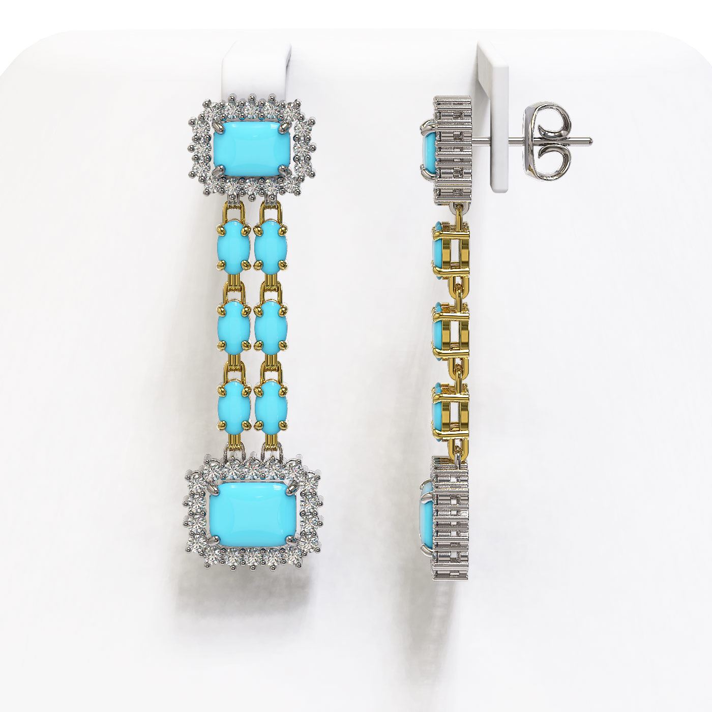 REF-188W9H - SKU: 45247 ---- 9.54 ctw Turquoise & Diamond Earrings 14K Yellow Gold
