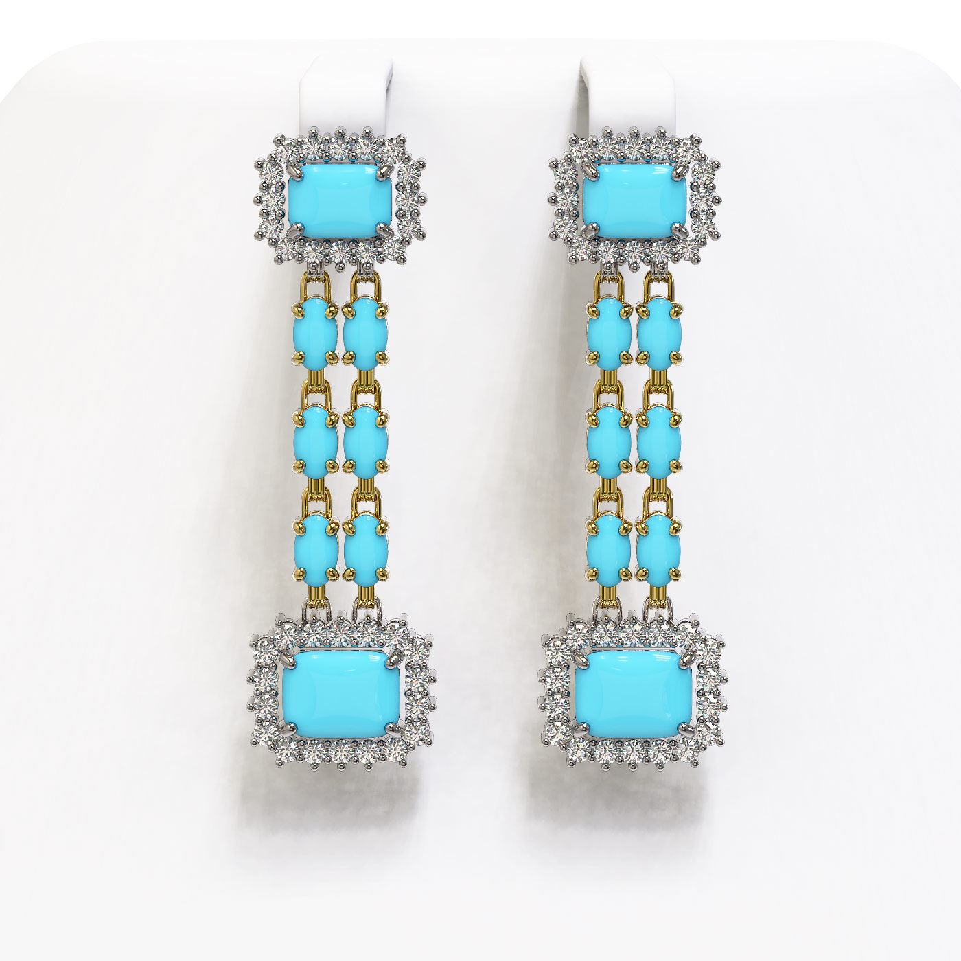 9.54 ctw Turquoise & Diamond Earrings 14K Yellow Gold