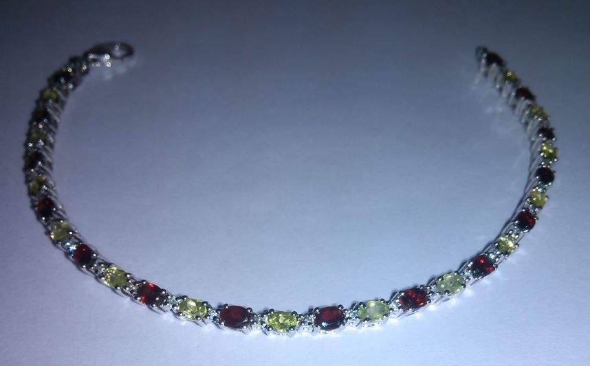 9.540g Bracelet of Peridot and Garnet Sterling 925 Silver