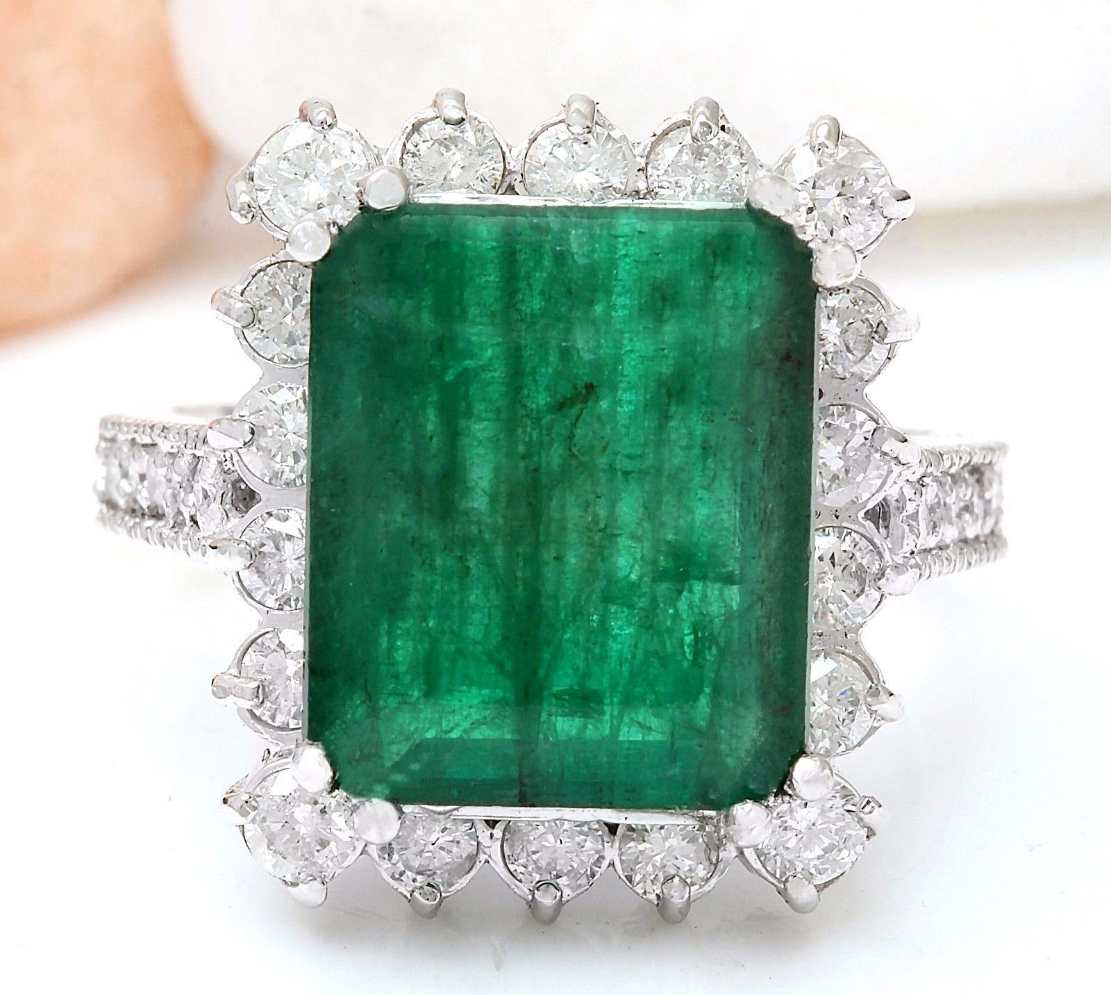 9.55 Carat Natural Emerald 18K Solid White Gold Diamond Ring