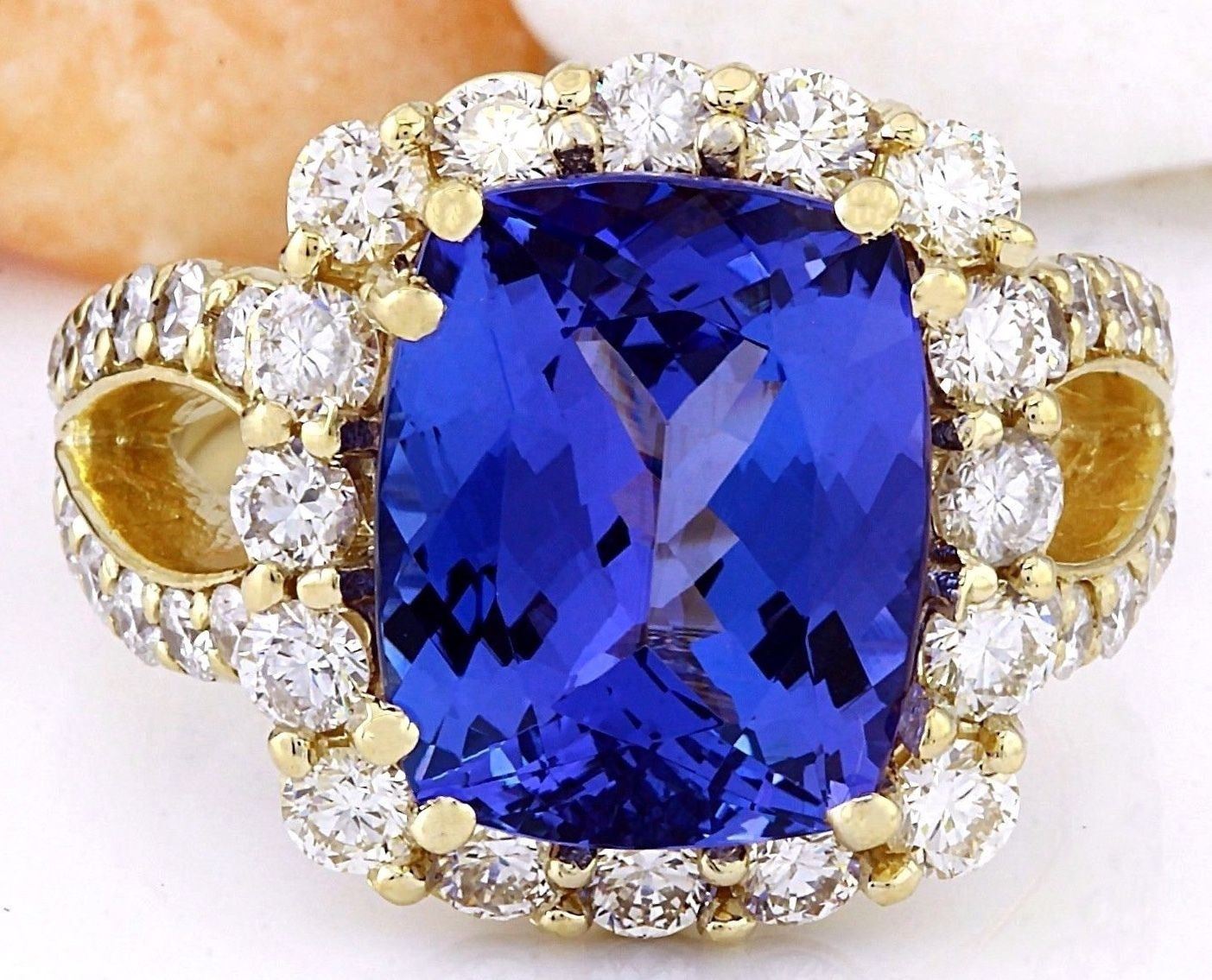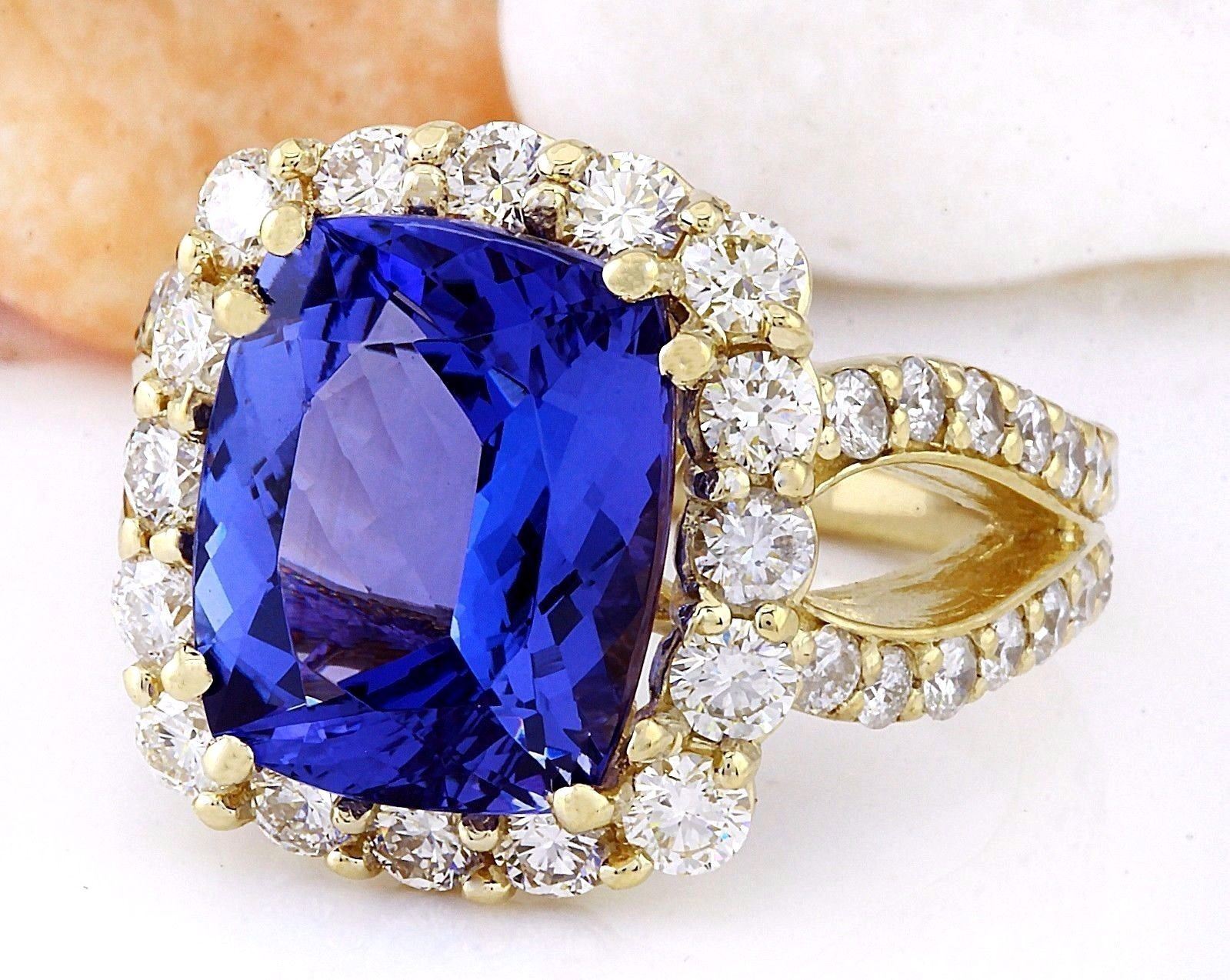 9.55 Carat Natural Tanzanite 18K Solid Yellow Gold Diamond Ring