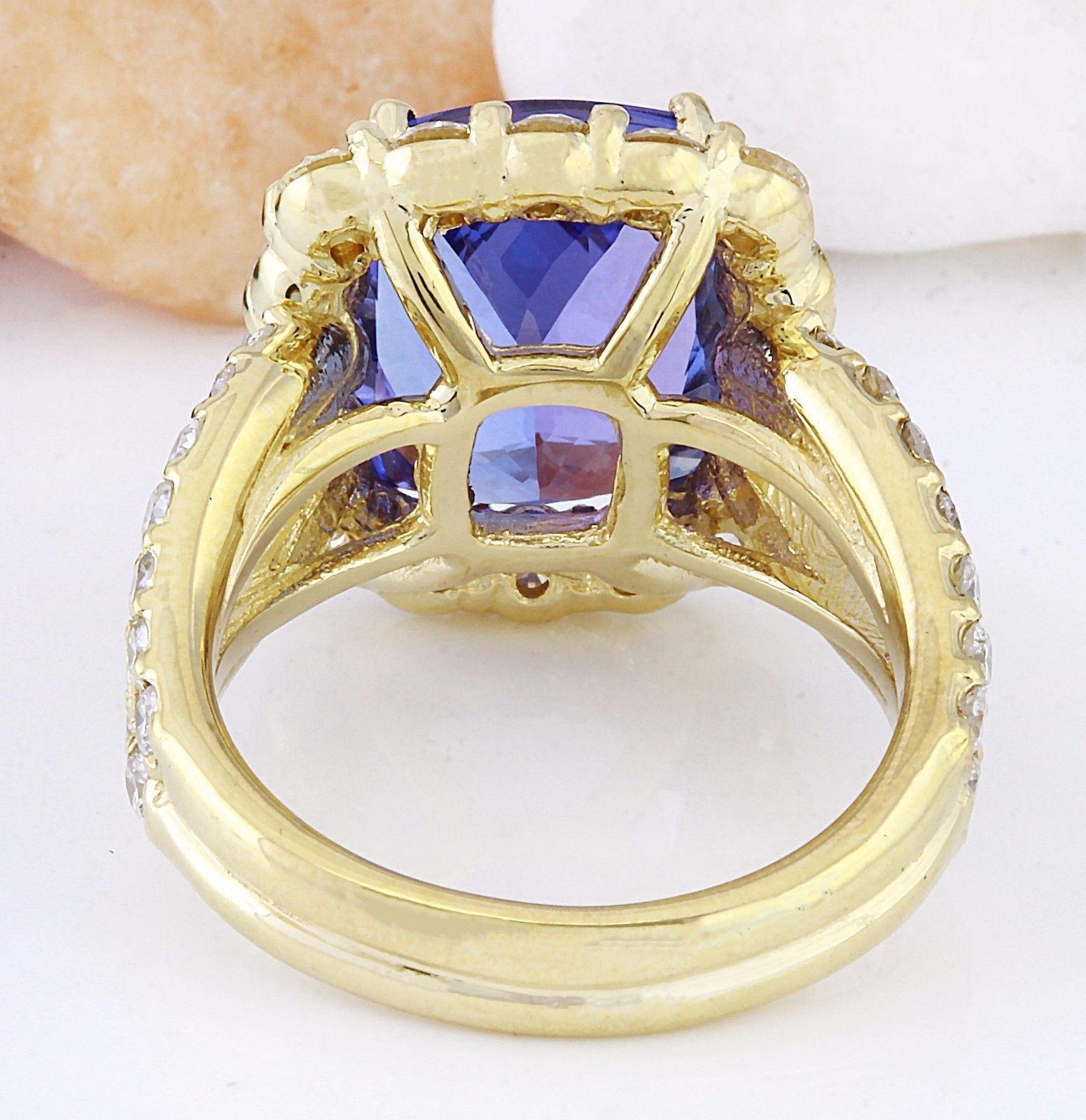 9.55 CTW Natural Tanzanite 18K Solid Yellow Gold Diamond Ring