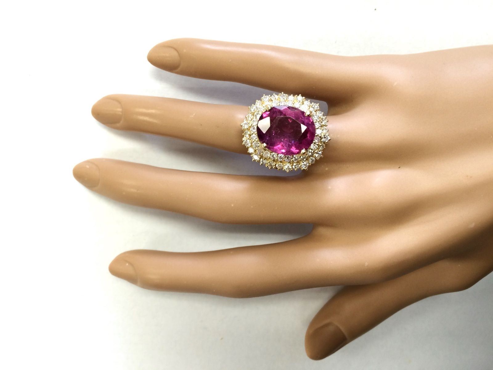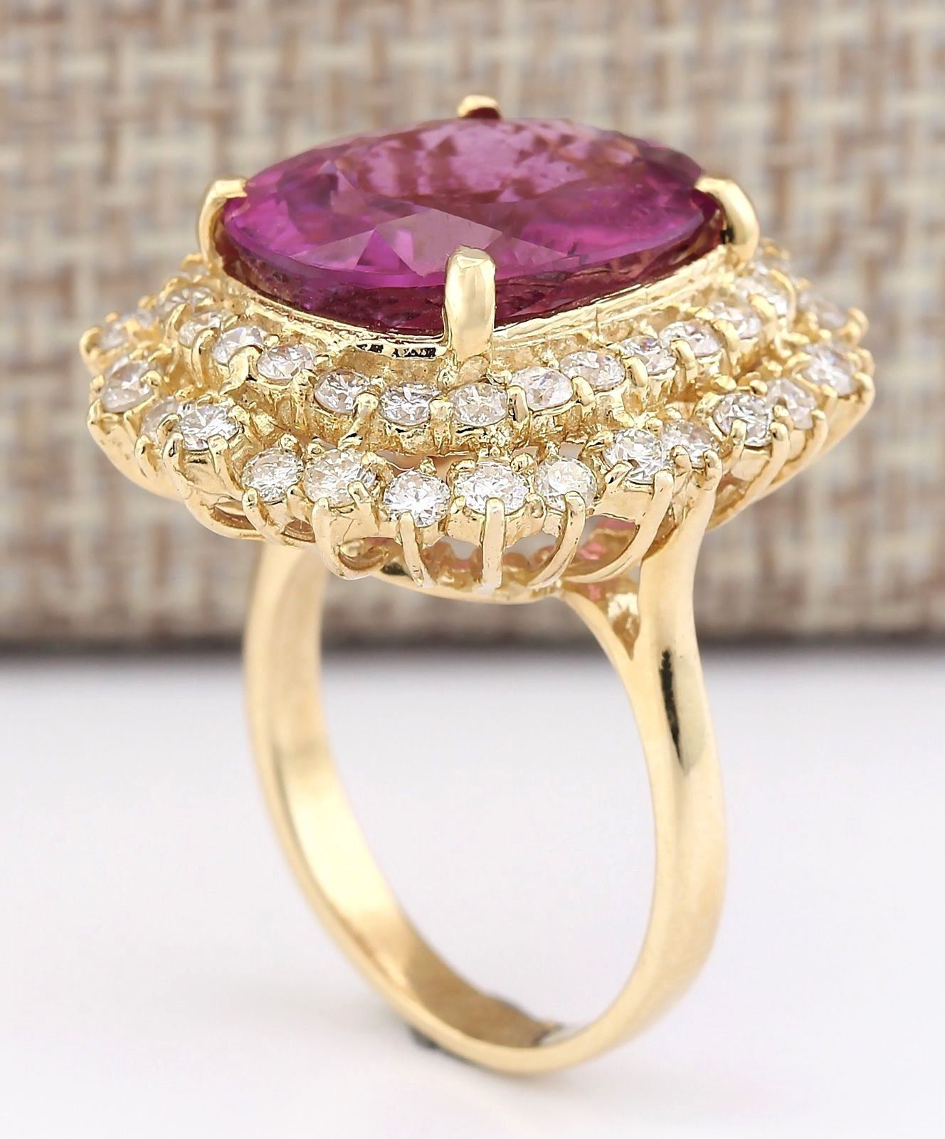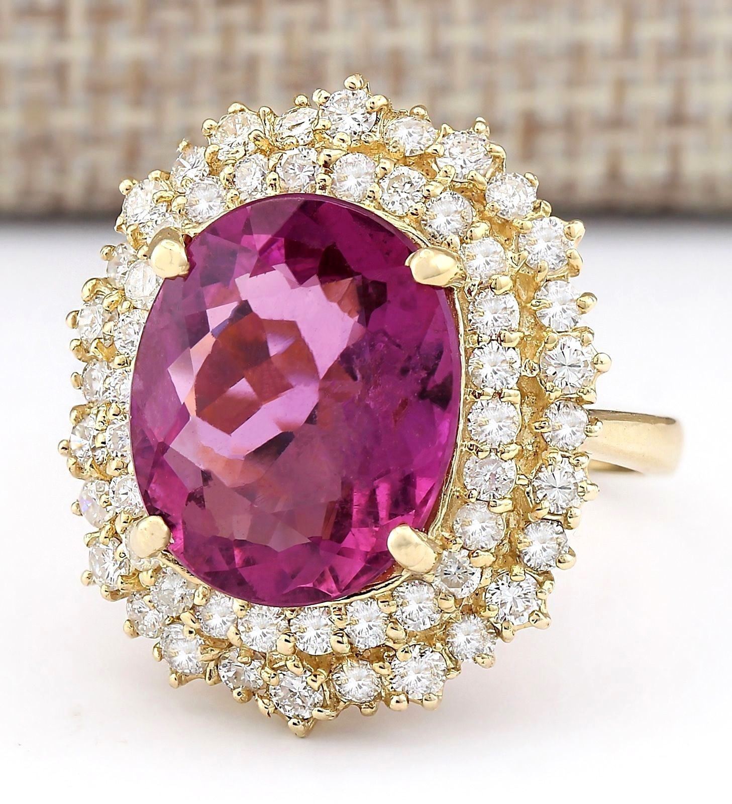 9.60 CTW Natural Pink Tourmaline And Diamond Ring 18K Solid Yellow Gold