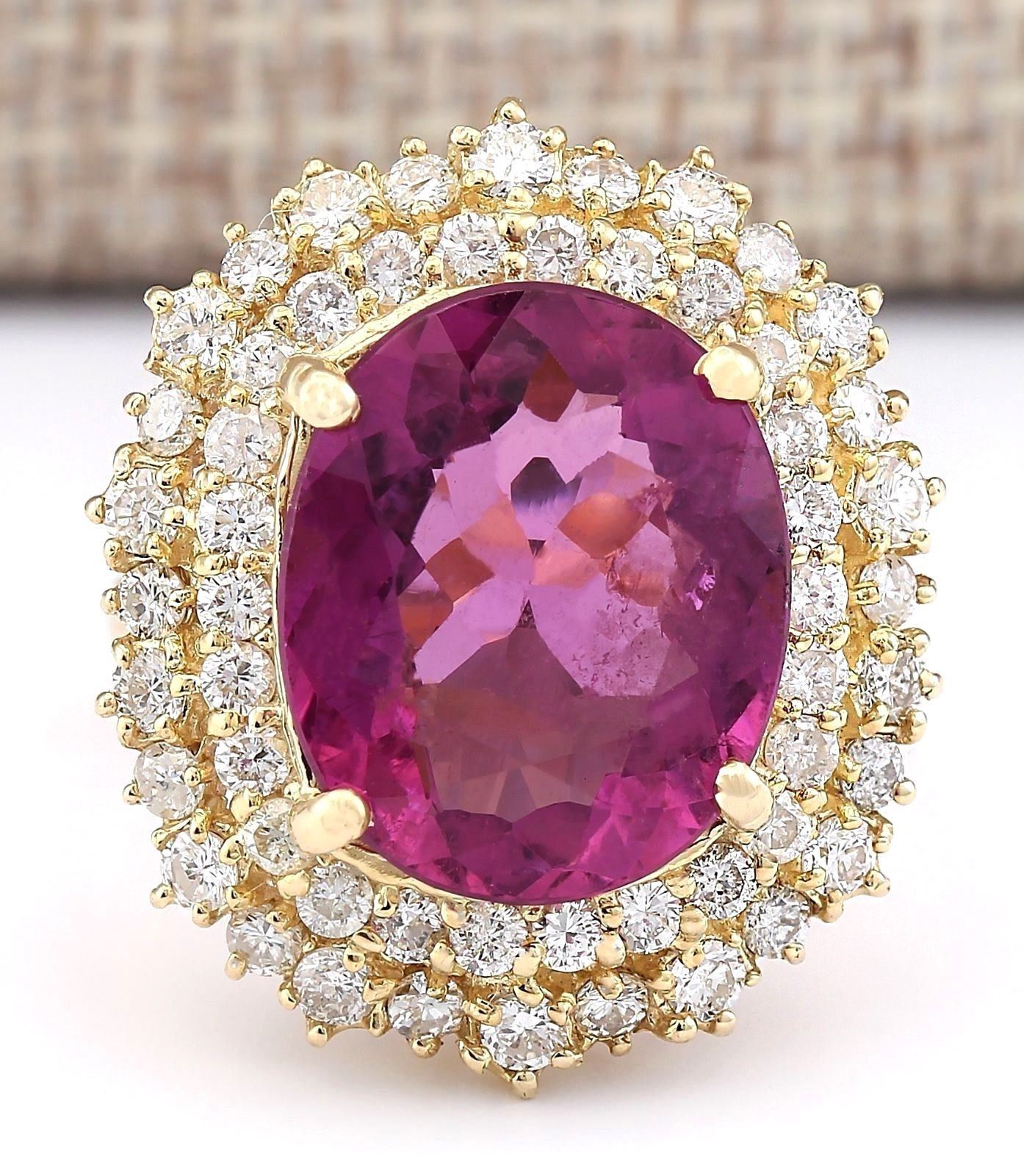 9.60 CTW Natural Pink Tourmaline And Diamond Ring 18K Solid Yellow Gold