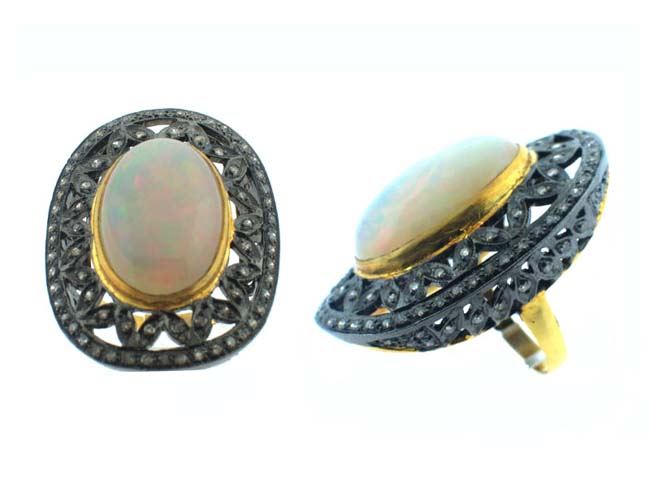 OPAL AND DIAMOND RING/Diamond Count 1:/Diamond Total Carat :1.7/Diamond Color & Clarity:J-L/I1-I2 Single Cut /Diamond Count 2:/Diamond 2 CTW:/Diamond Count 3:/Gemstone Count 1:1/Gemstone CTW:7.9/Gemstone Dimension:/Gemstone Shape:Oval /Gemstone Count 2:/Gemstone Shape:/Ring Dimension:/Metal Type 1:14KYellow Gold :Gram Weight:3.25/Metal Type 2:over0.925Sterling Silver / Weight Gram:6.34/Gross Weight :11.51/Ring Size:7