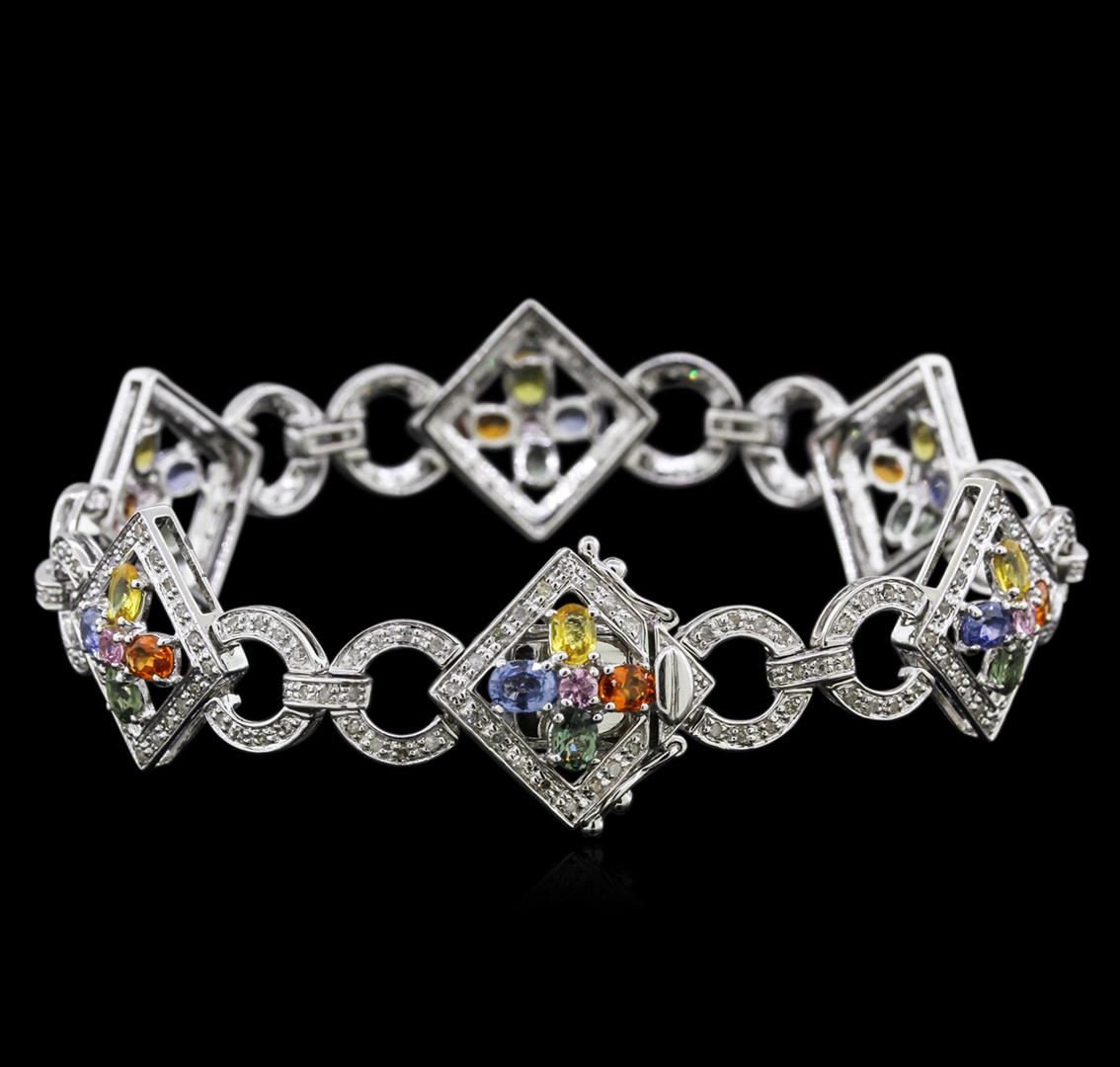 One bracelet featuring: 14KT white gold weighing 18.70 grams containing multicolored sapphires with a total weight of 9.60ct and diamonds with a total weight of 1.05ct.