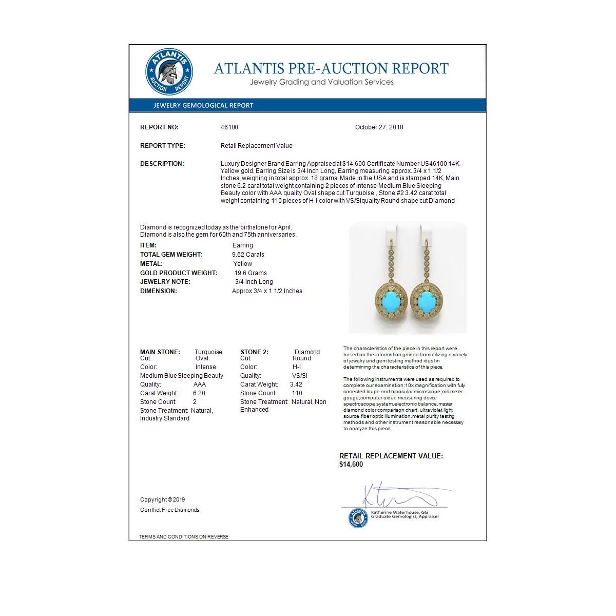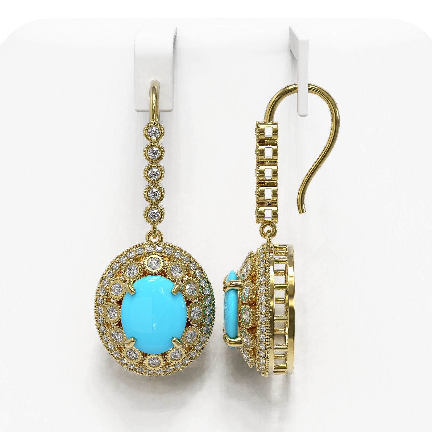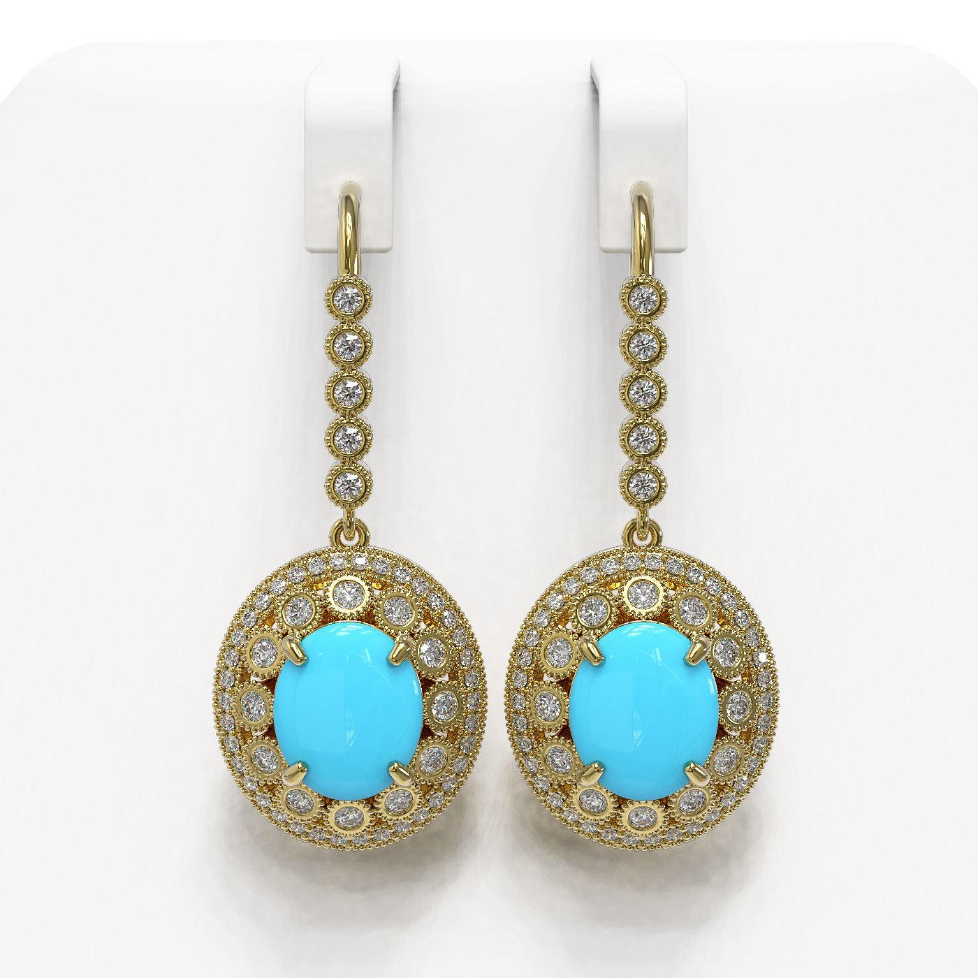 9.62 ctw Turquoise & Diamond Earrings 14K Yellow Gold