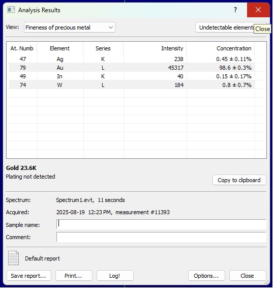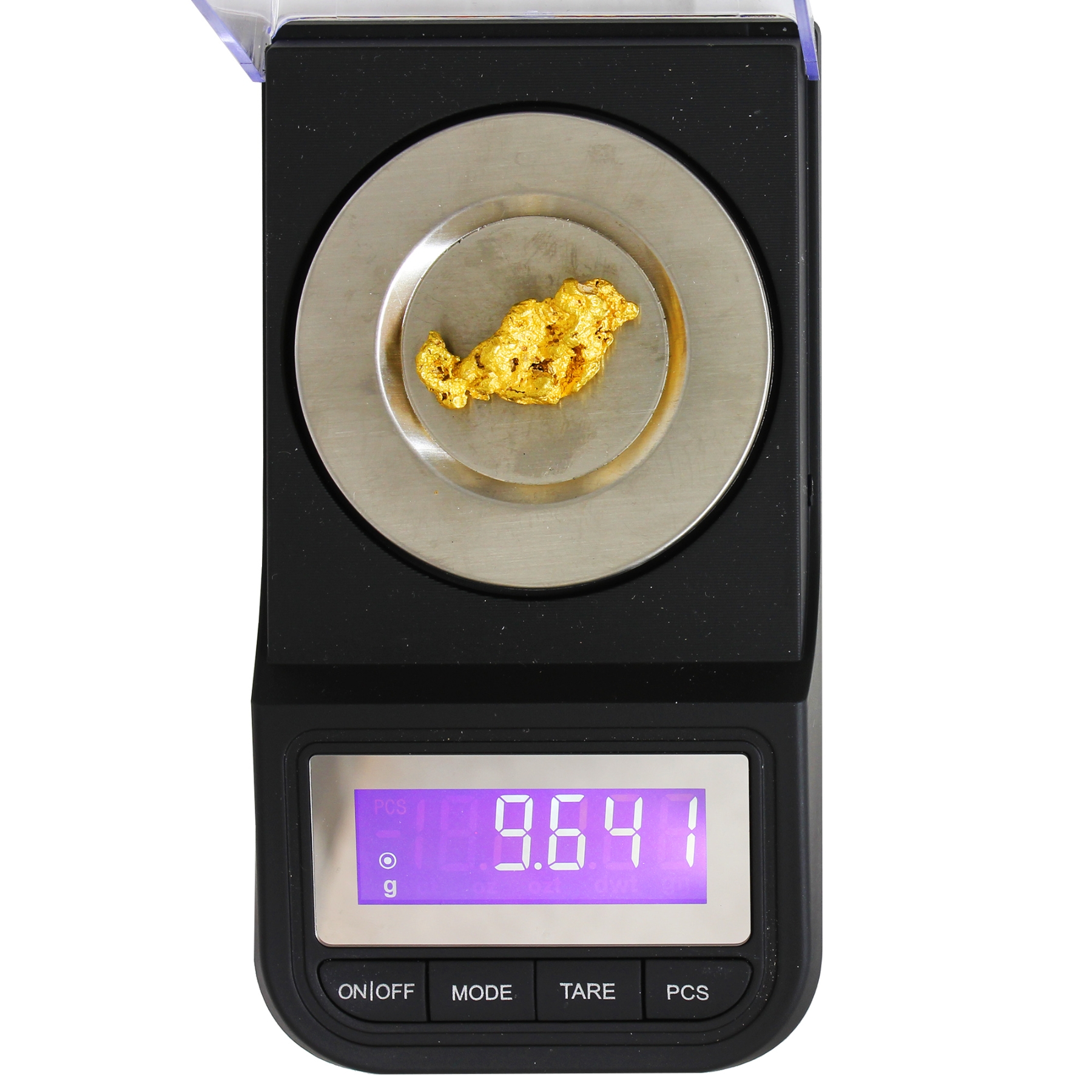 This uniquely shaped, richly coloured nugget has been professionally tested via x-ray fluorescent analyzer and found to contain 98.6% pure gold. It measures approximately 3 centimetres in length and has been professionally weighed at 9.641 grams. Please refer to the photographs for weight and XRF results.