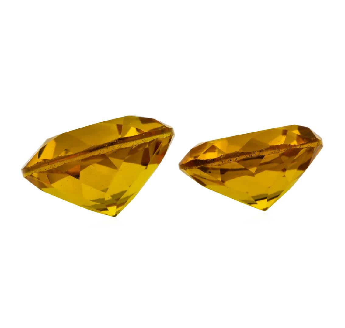 One natural round cut citrine quartz parcel of two with an exact weight of 9.65ctw., clarity is eye clean, yellowish orange, medium dark. Gemological Appraisals Services estimates the retail value at $386