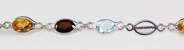 9.65CT Multi Precious Gemstone Silver Bezel Bracelet 2. **|**|** 7.0" Long Natural Multi-color Precious Gemstone in Bezel Design Silver Bracelet; 10pcs 7x5mm ; MSRP: $800