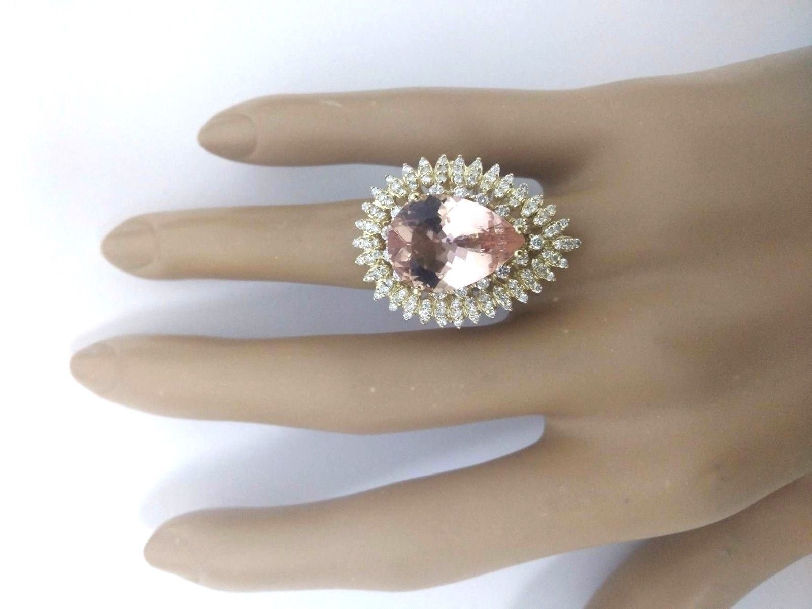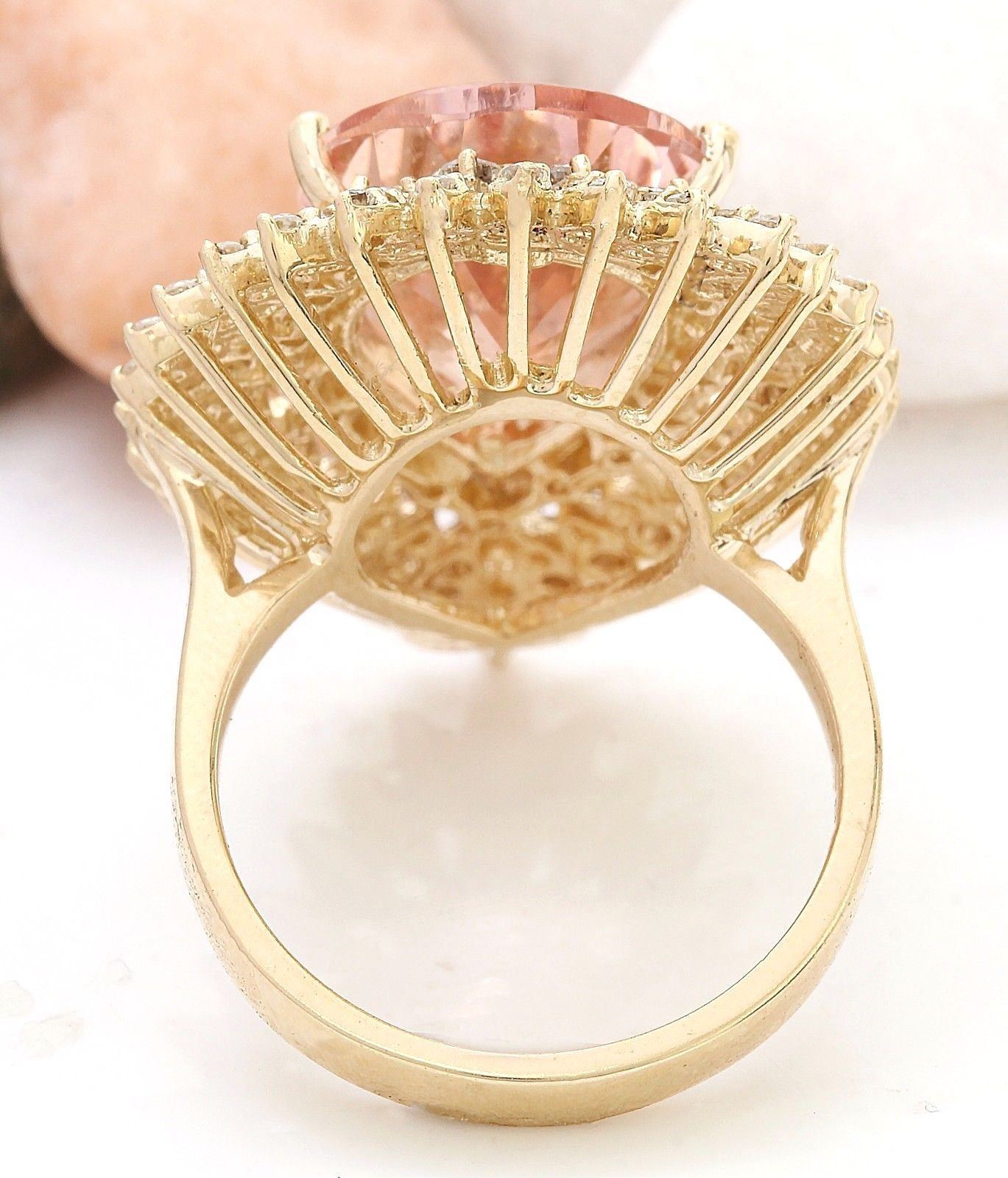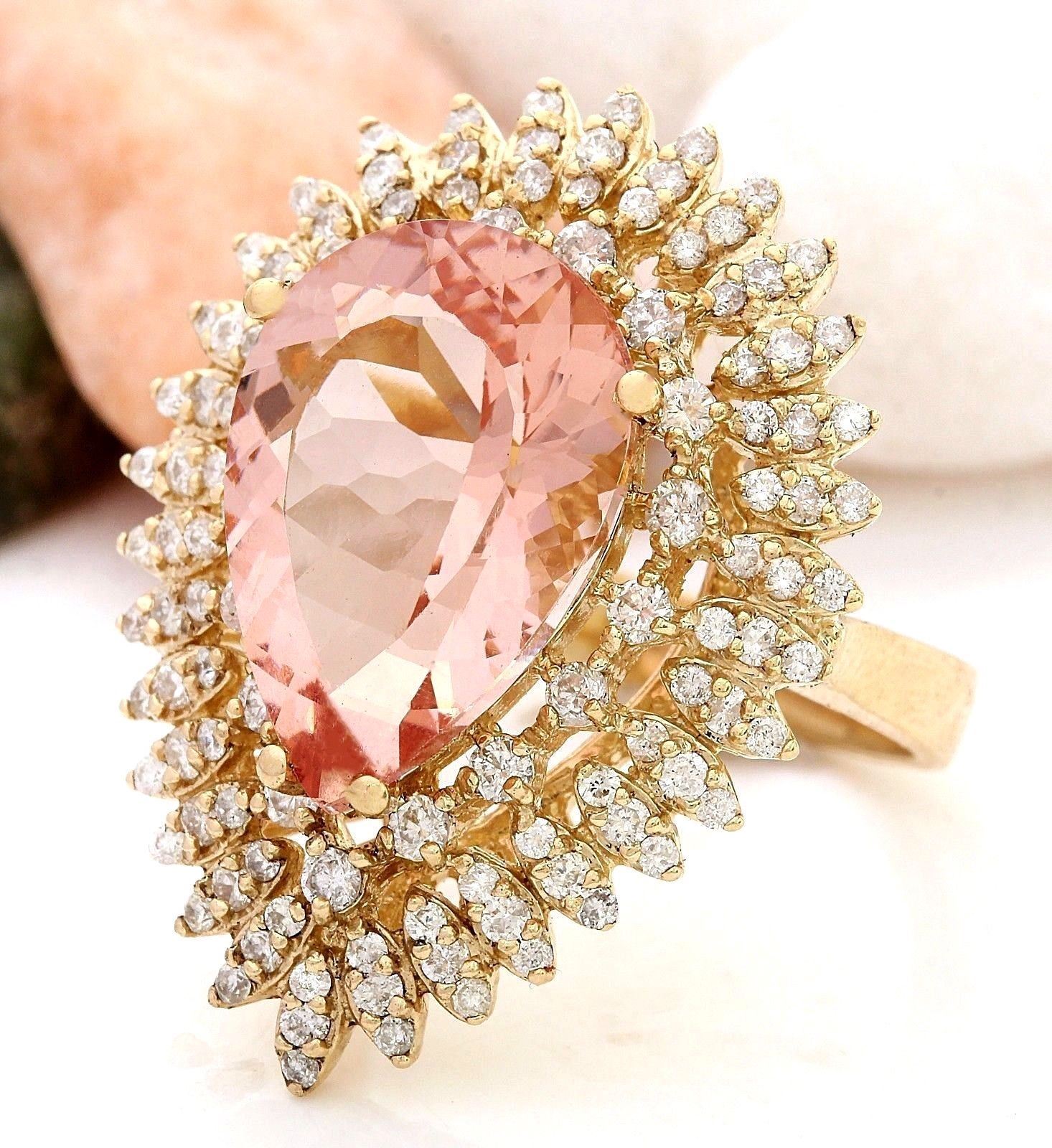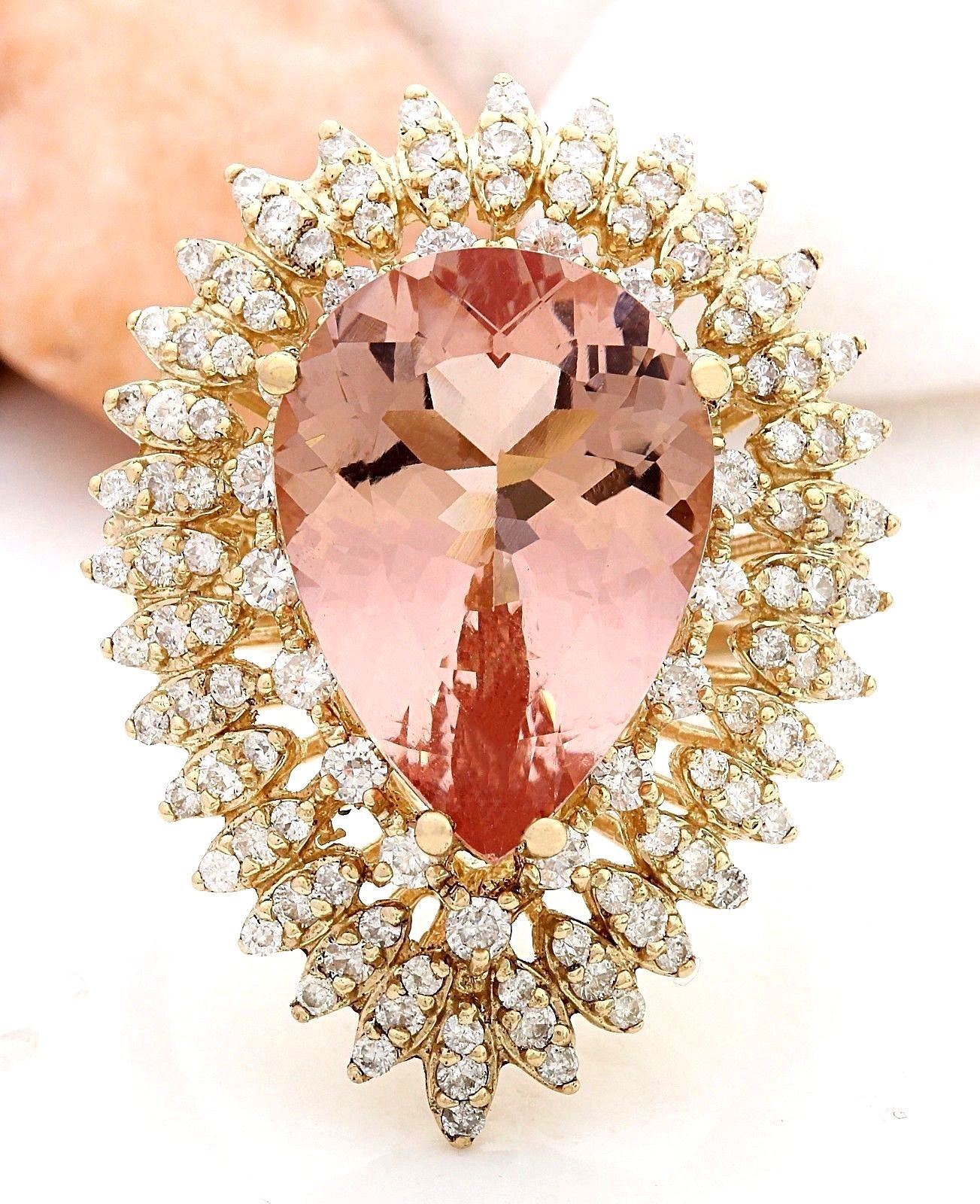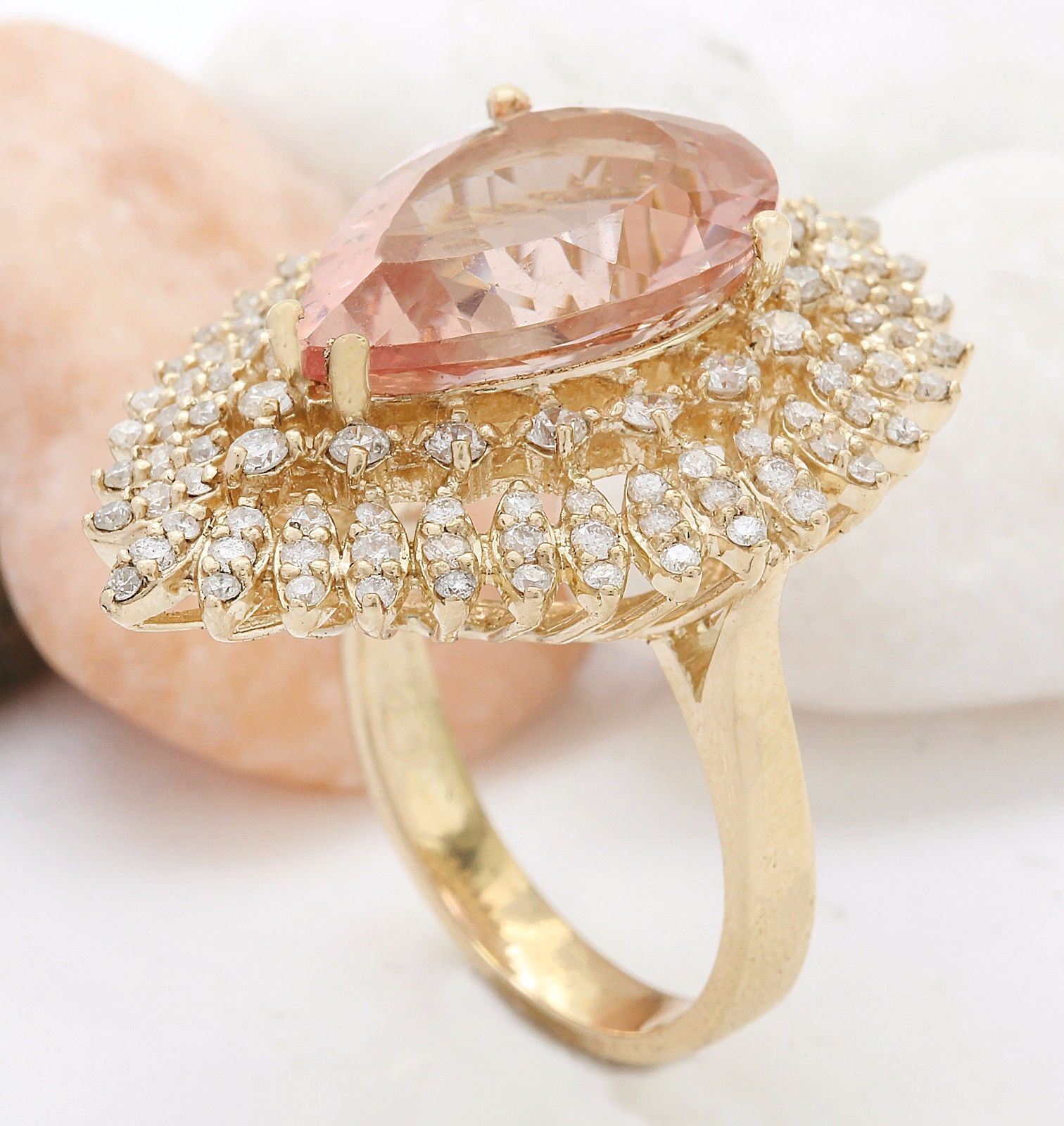 9.66 Carat Natural Morganite 14K Solid Yellow Gold Diamond Ring
