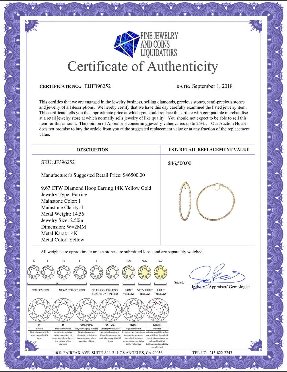 REF-619R3K - JF396252 ---- 9.67 CTW White Round Diamond Earring 14K Yellow Gold