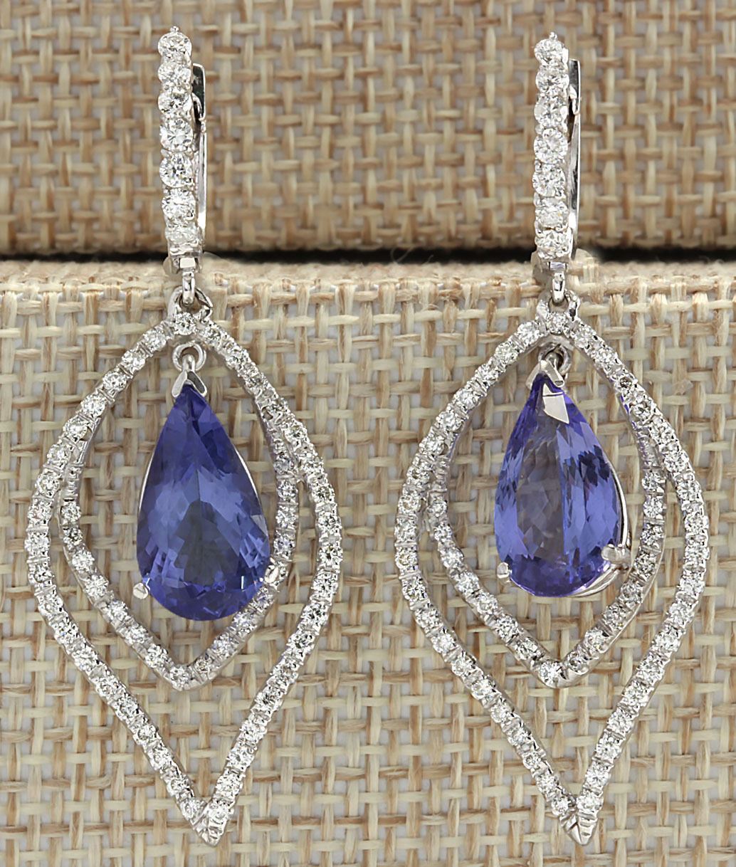 9.67 CTW Natural Tanzanite And Diamond Earrings 18K Solid White Gold