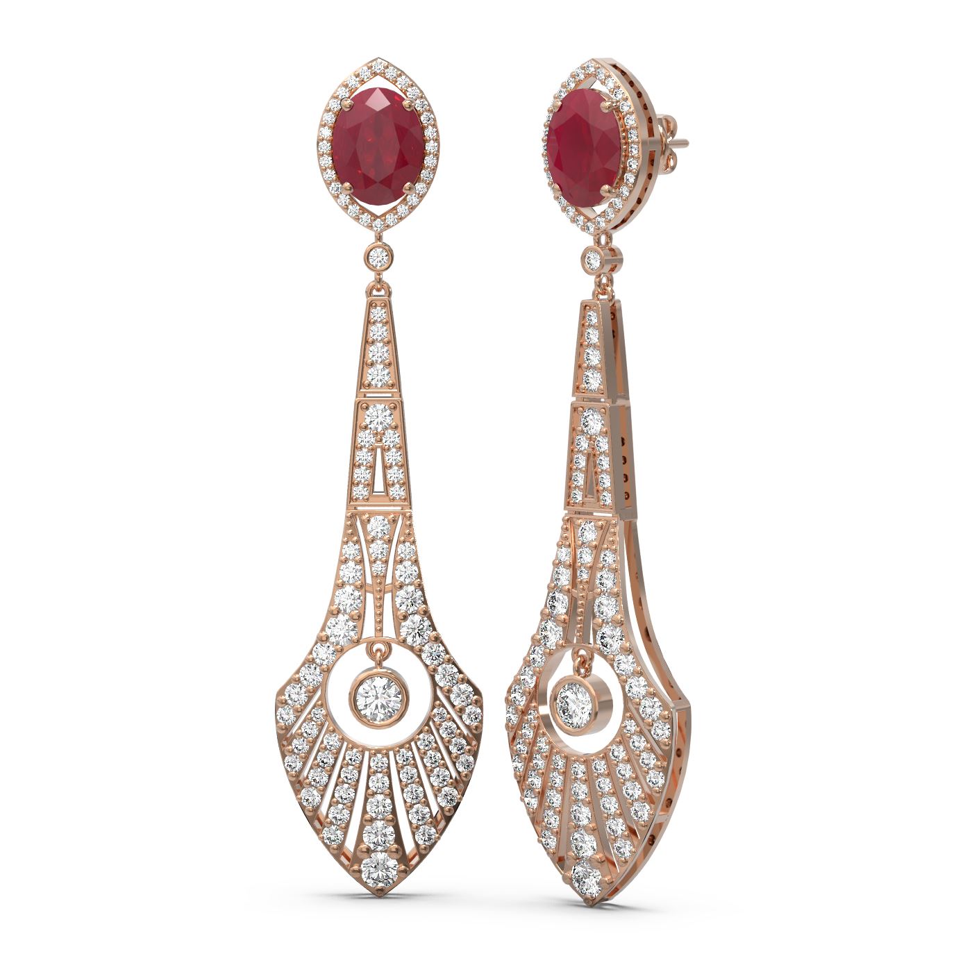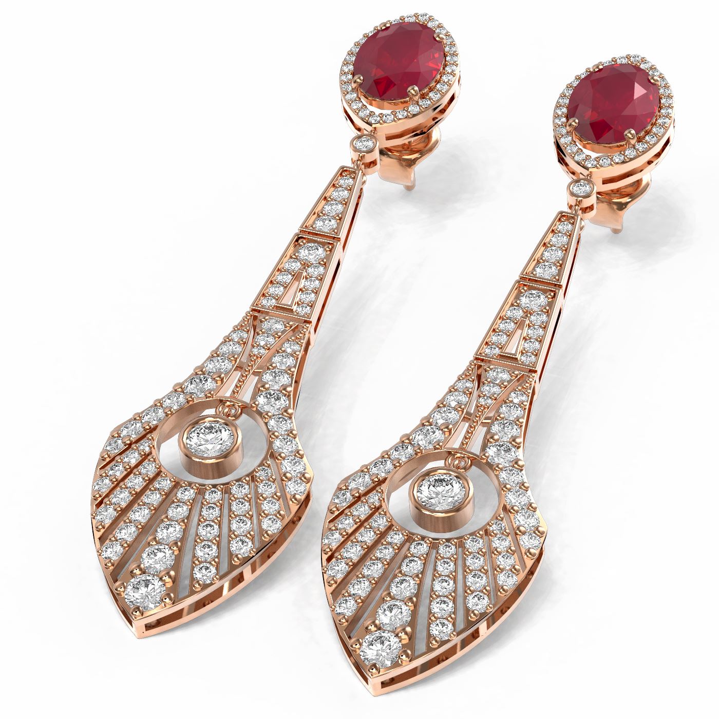 SKU: 56808 ---- 9.69 ctw Ruby & Diamond Earrings 18K Rose Gold