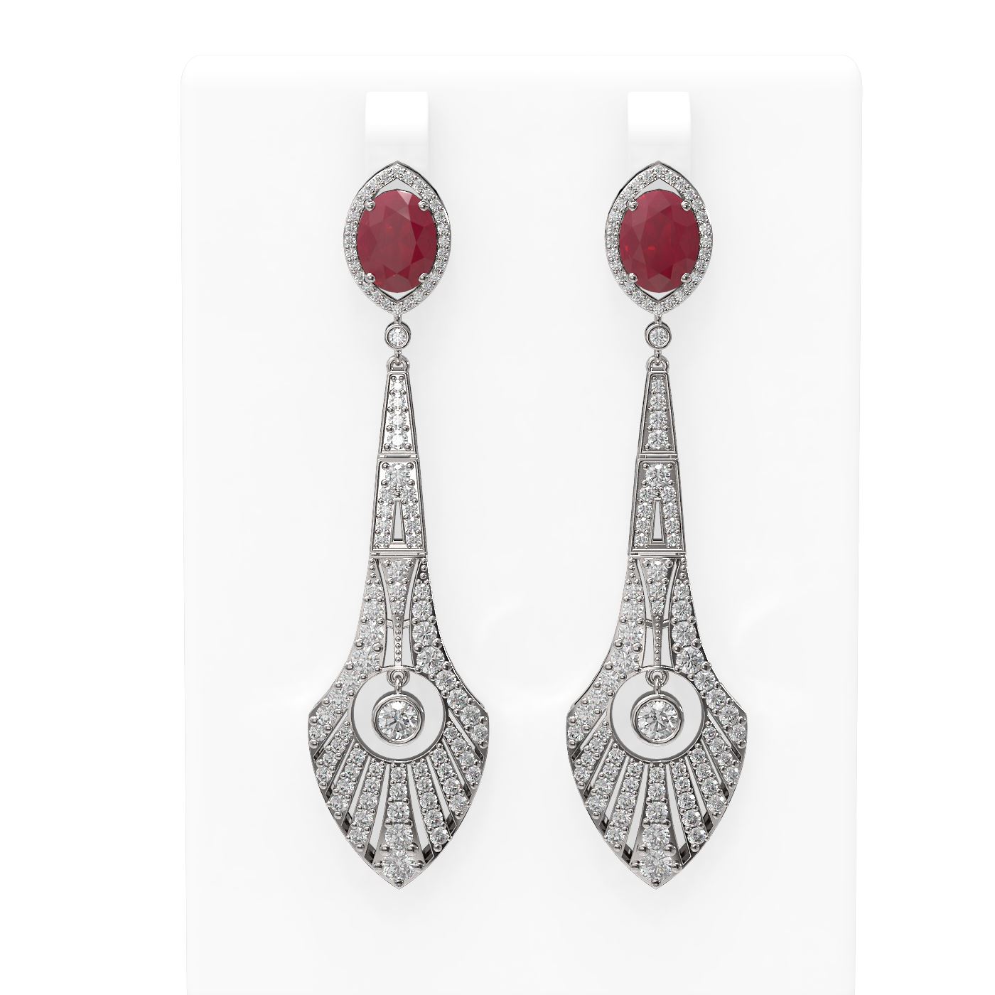 REF-485N5F - SKU: 56807 ---- 9.69 ctw Ruby & Diamond Earrings 18K White Gold