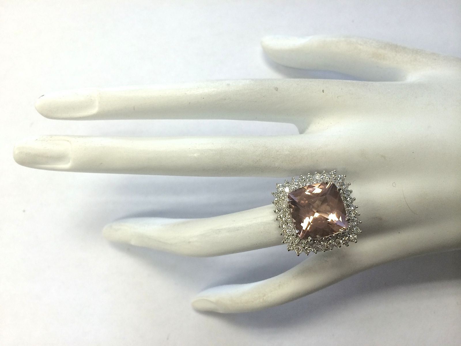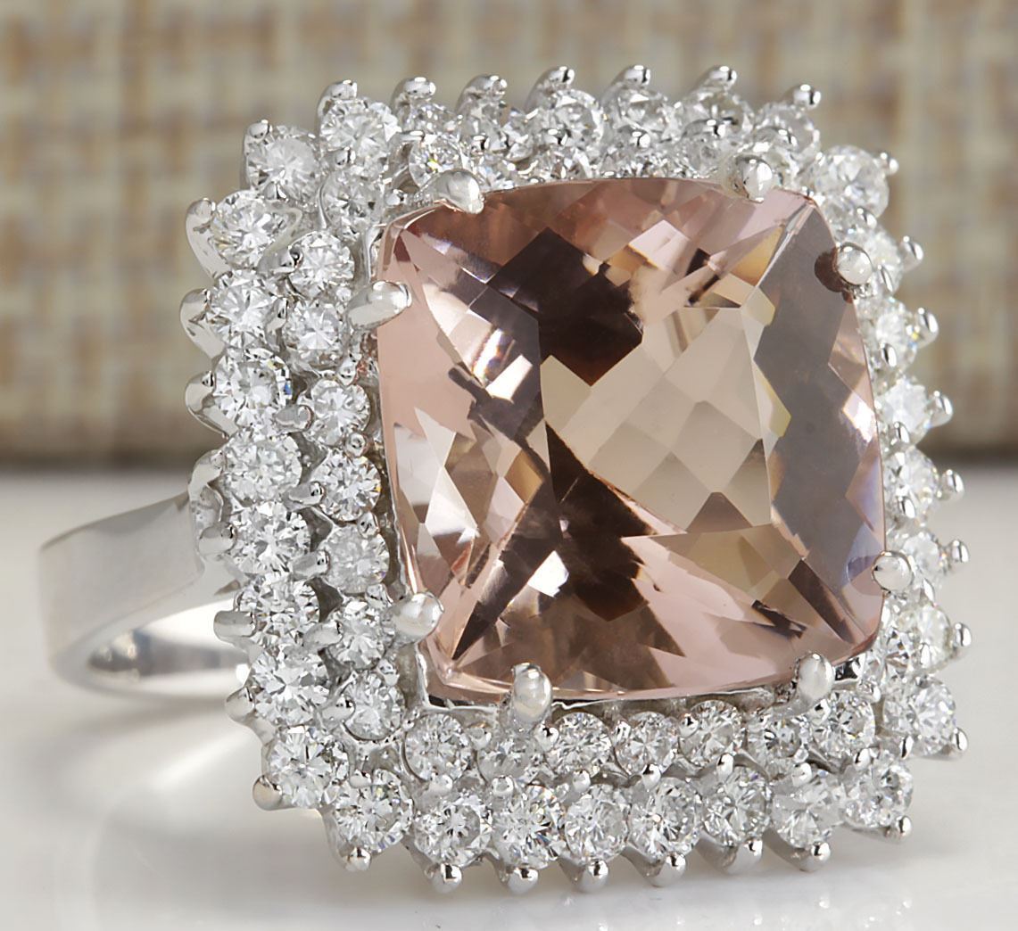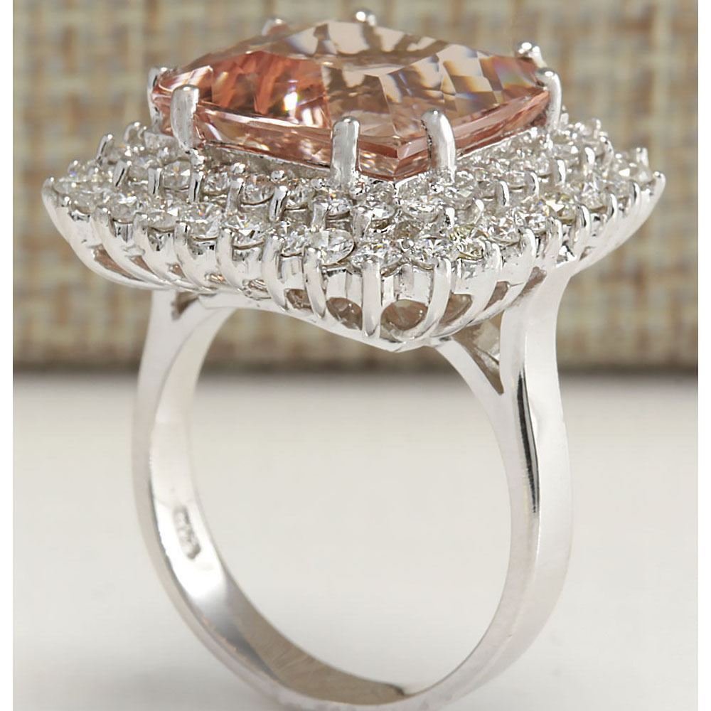 9.71 CTW Natural Peach Morganite And Diamond Ring In 18K Solid White Gold