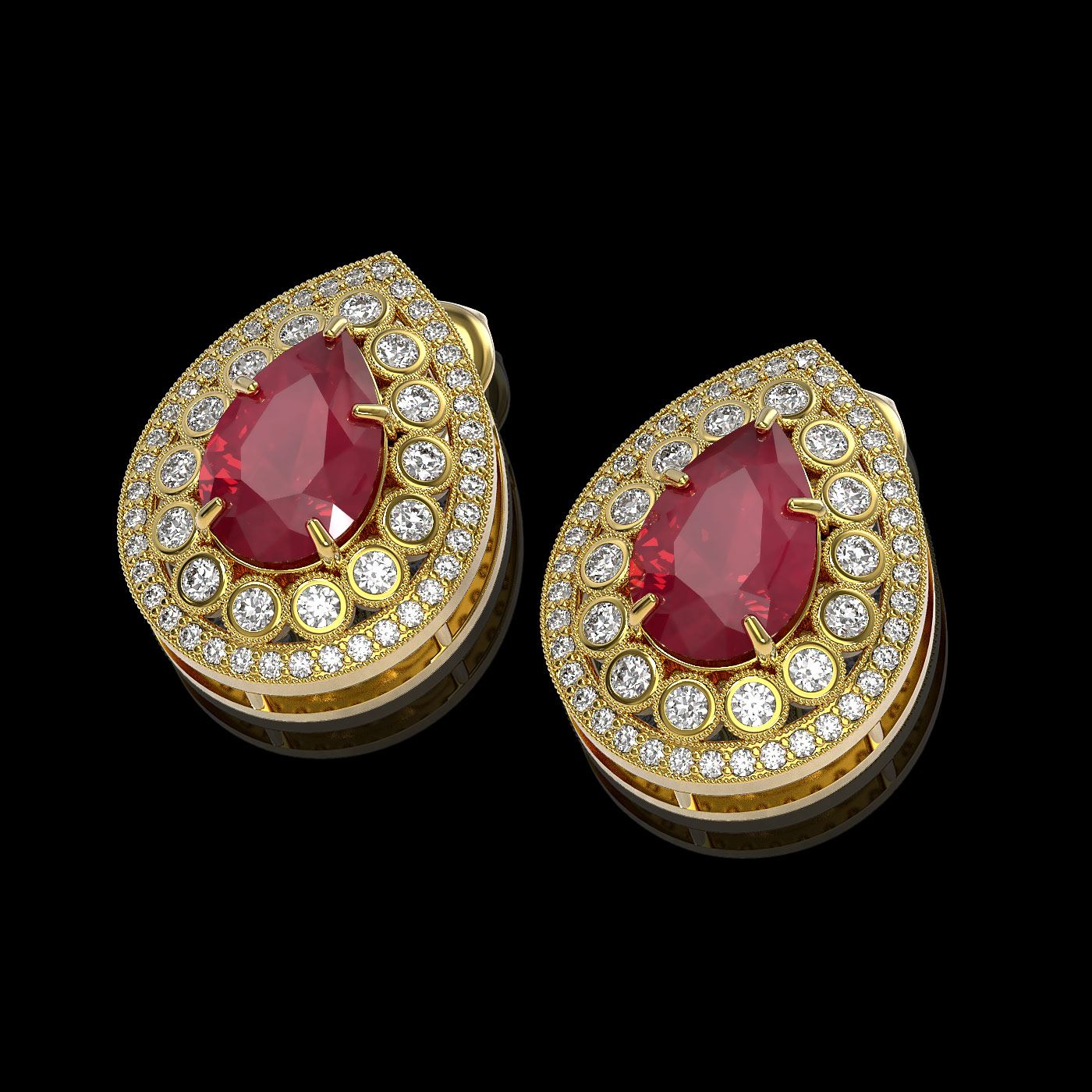 SKU: 43177 ---- 9.74 ctw Certified Ruby & Diamond Victorian Earrings 14K Yellow Gold