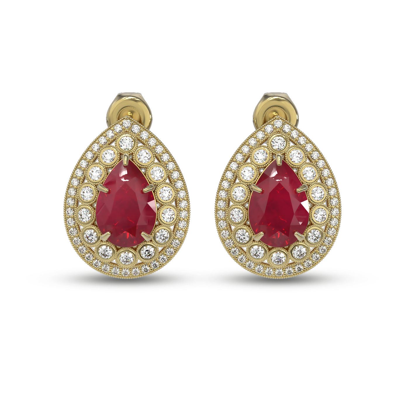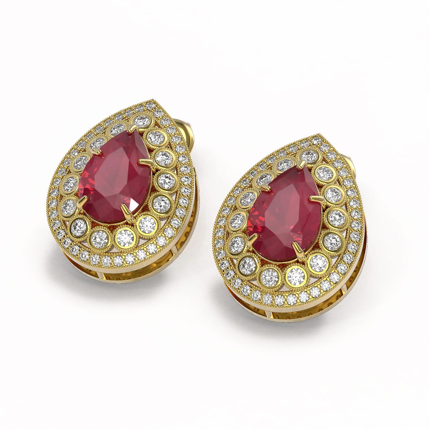 SKU: 43177 ---- 9.74 ctw Certified Ruby & Diamond Victorian Earrings 14K Yellow Gold
