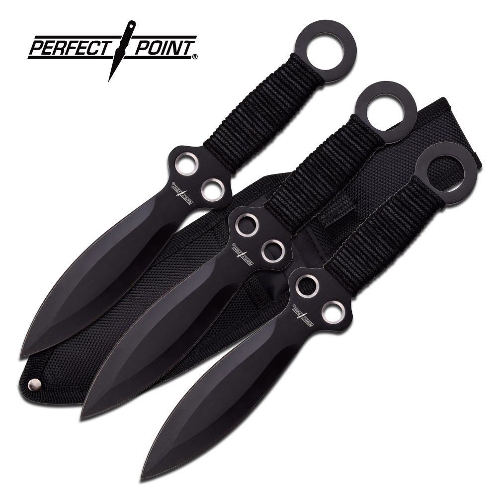 9.75" BLACK CORD WRAPPED HANDLE THROWING KNIVES SET W/P **|**|** 9.75" BLACK CORD WRAPPED HANDLE THROWING KNIVES SET W/POUCH