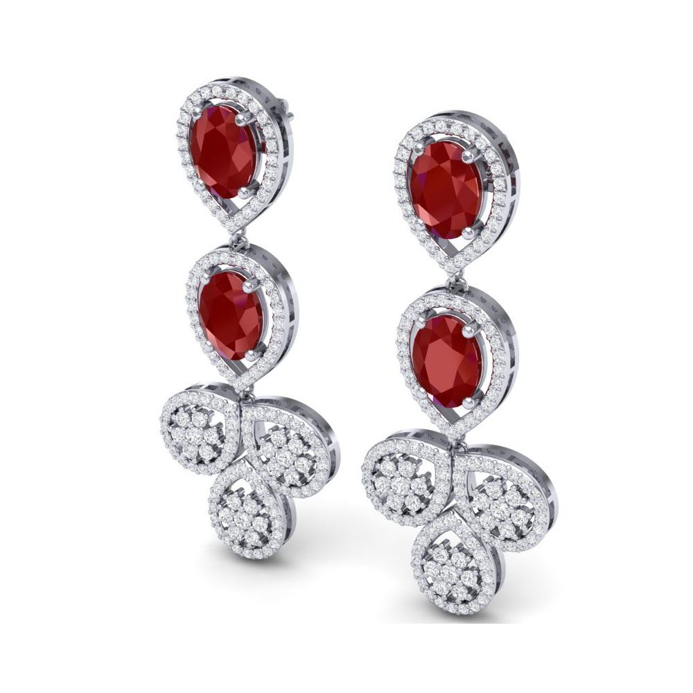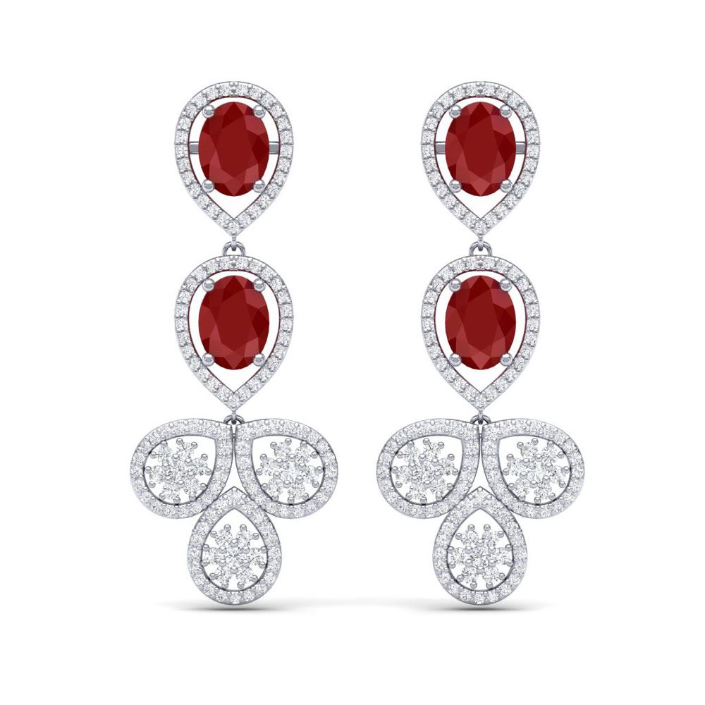 9.75 ctw Designer Ruby & VS Diamond Earrings 18K White Gold