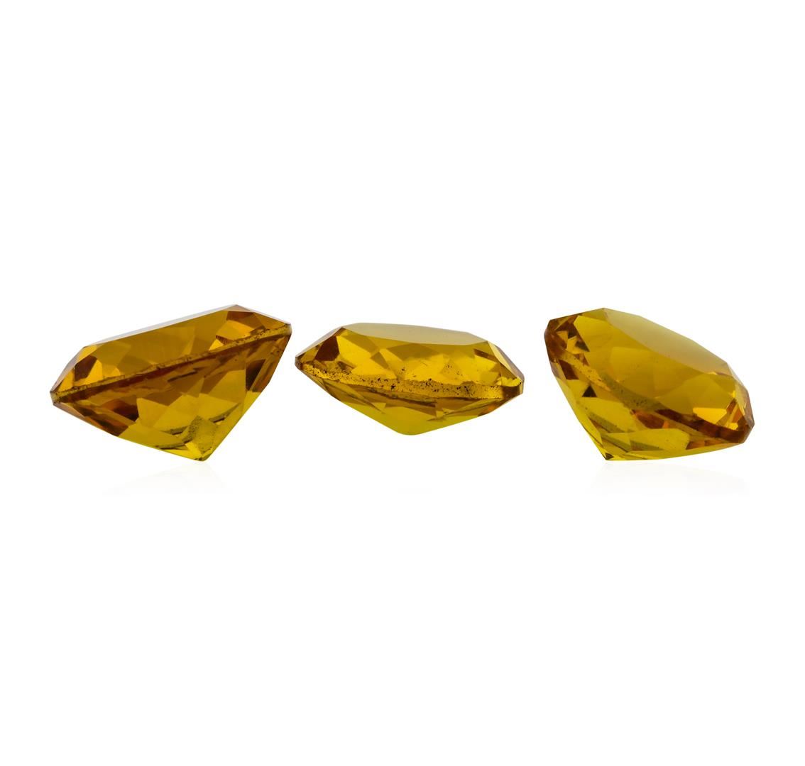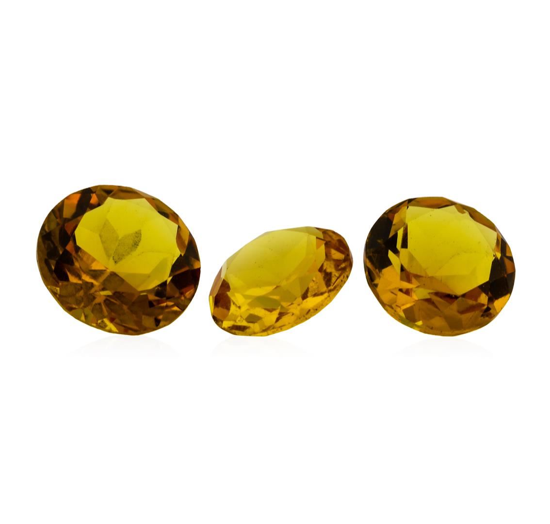 One natural round cut citrine quartz parcel of three with an exact weight of 9.75ctw., clarity is eye clean, yellowish orange, medium dark. Gemological Appraisals Services estimates the retail value at $390 GAS Appraised.