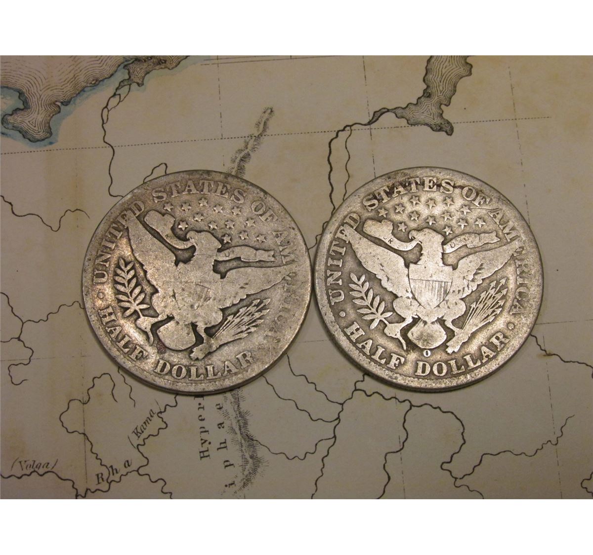 9.75" x 13" Map of "The World as Known to the Ancients" ready for framing; & 1901 O & 1902 P Barber Half Dollars in G-AG.