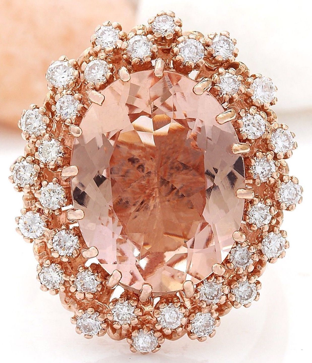 9.80 Carat Natural Morganite 14K Solid Rose Gold Diamond Ring